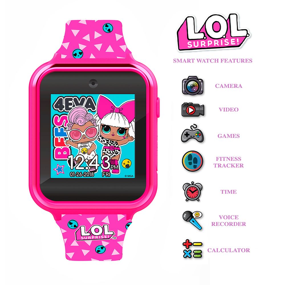 Το έξυπνο ρολόι LOL Suprise! με το χαρακτηριστικό σχεδιασμό διαθέτει πολλές δυνατότητες όπως κάμερα για λήψη φωτογραφιών, εγγραφή video, διαδραστικά παιχνίδια, βηματομετρητή, ξυπνητήρι, αριθμομηχανή, χρονόμετρο, αντίστροφη μέτρηση και δυνατότητα εγγραφής φωνής. Επιπλέον διαθέτει λειτουργία για selfies ενώ, παράλληλα, θα εξοικειωθούν με την ώρα και τους αριθμούς.