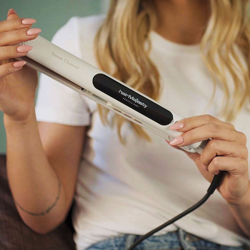 Η ισιωτική μαλλιών Hair Majesty HM-4022 Steam Channel με τεχνολογία ατμού προσφέρει εξαιρετικά αποτελέσματα και όμορφα και ενυδατωμένα μαλλιά. Διαθέτει διπλή λειτουργία για ίσια μαλλιά και μπούκλες.