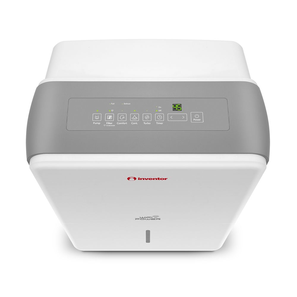 Αφυγραντήρας Inventor PWR-WIFI-50L με δυνατότητα αφύγρανσης 50lt/24ωρο, λειτουργία Turbo, δυνατότητα στεγνώματος ρούχων, ενσωματωμένη αντλία νερού και λειτουργία έξυπνης αφύγρανσης.