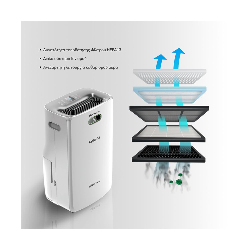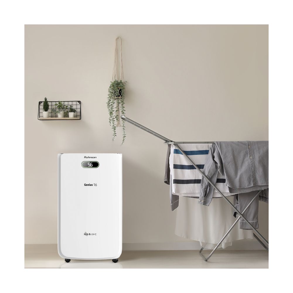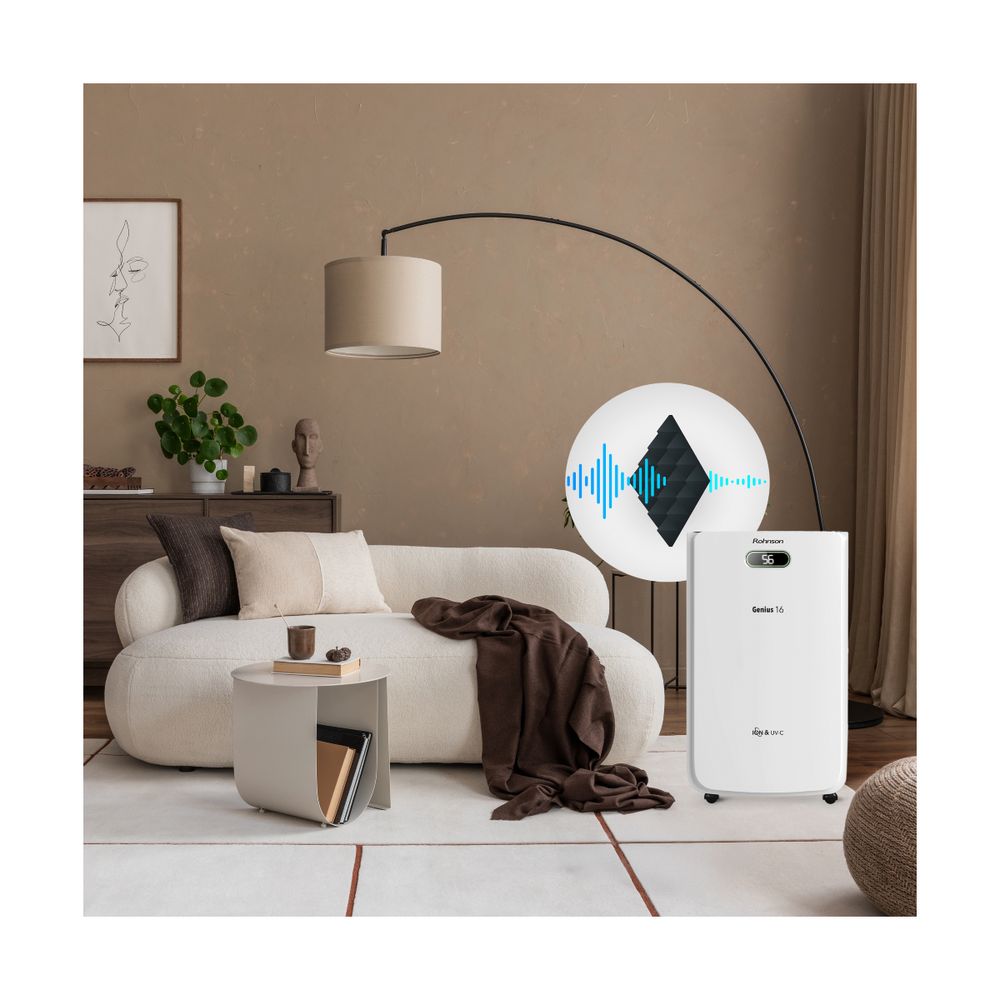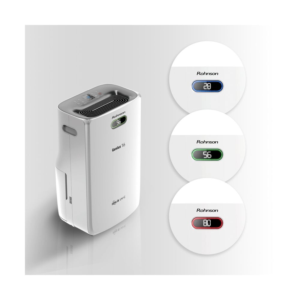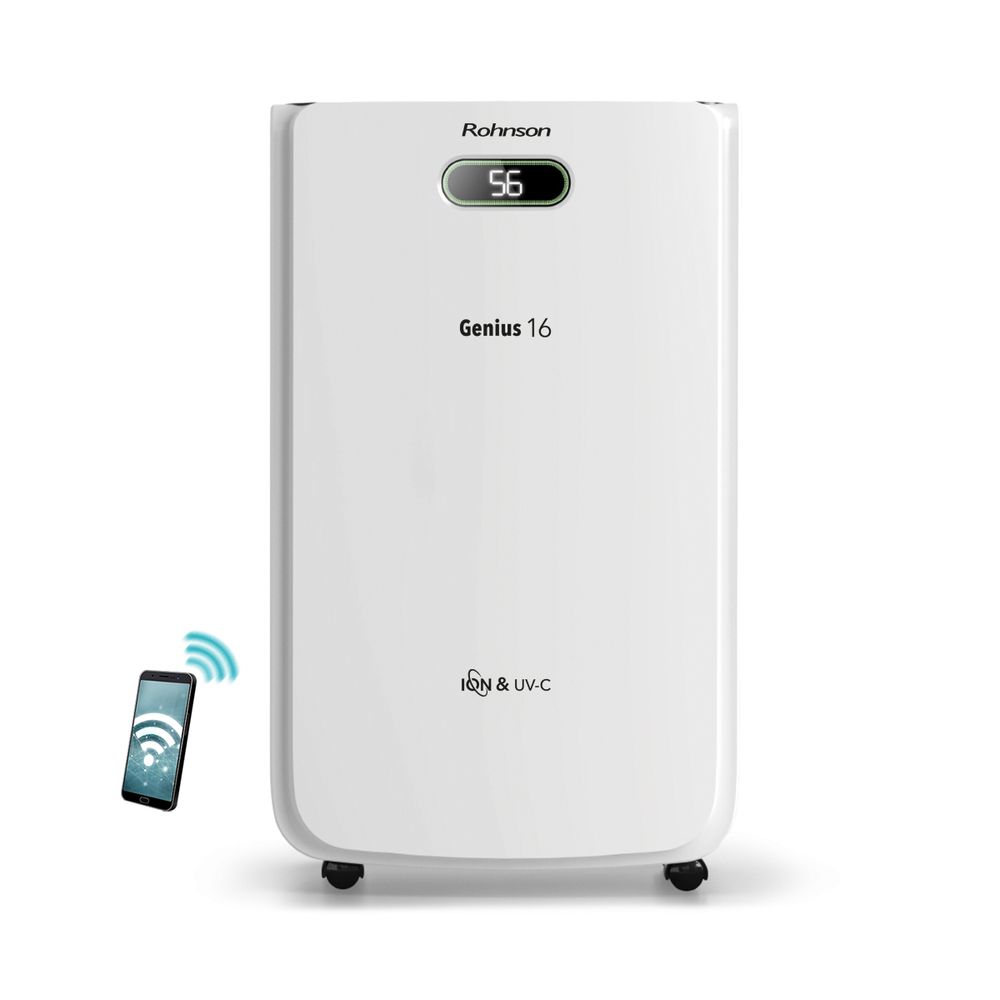 Ο Rohnson R-95016 Genius είναι ο αφυγραντήρας που χρειάζεσαι για χώρους έως 100m². Αφαιρεί 16 λίτρα υγρασίας/24ωρο, έχει κάδο 6.5 λίτρων, Wi-Fi για απομακρυσμένο έλεγχο, UV-C λάμπα, διπλό ιονισμό και δυνατότητα φίλτρου HEPA για καθαρό αέρα.
