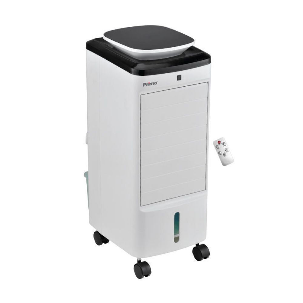 Φορητό Air Cooler Primo PRAC-80586 με τηλεχειριστήριο, πίνακα ελέγχου με πλήκτρα αφής, 3 ταχύτητες, λειτουργία ιονιστή, χρονοδιακόπτη, χαμηλό επίπεδο θορύβου και περιστρεφόμενα ροδάκια για εύκολη μετακίνηση.