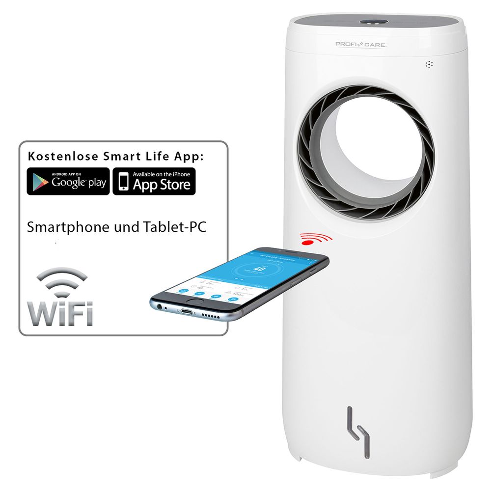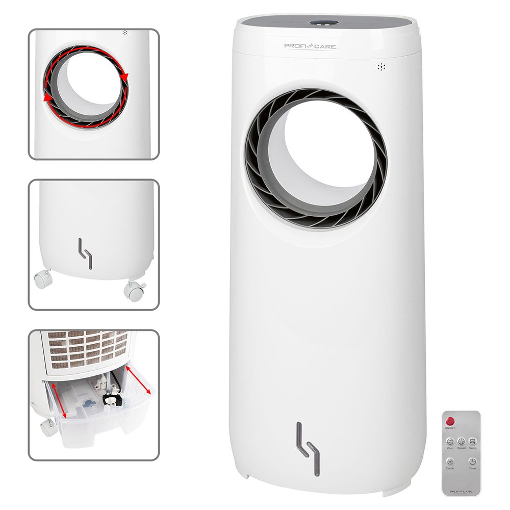 Air Cooler PC-LK 3088 της ProfitCare με υγραντήρα και φίλτρο αέρα για υγιή ατμόσφαιρα. Διαθέτει 3 ταχύτητες, WiFi, χρονοδιακόπτη, τηλεχειριστήριο και ρόδες για εύκολη μεταφορά.