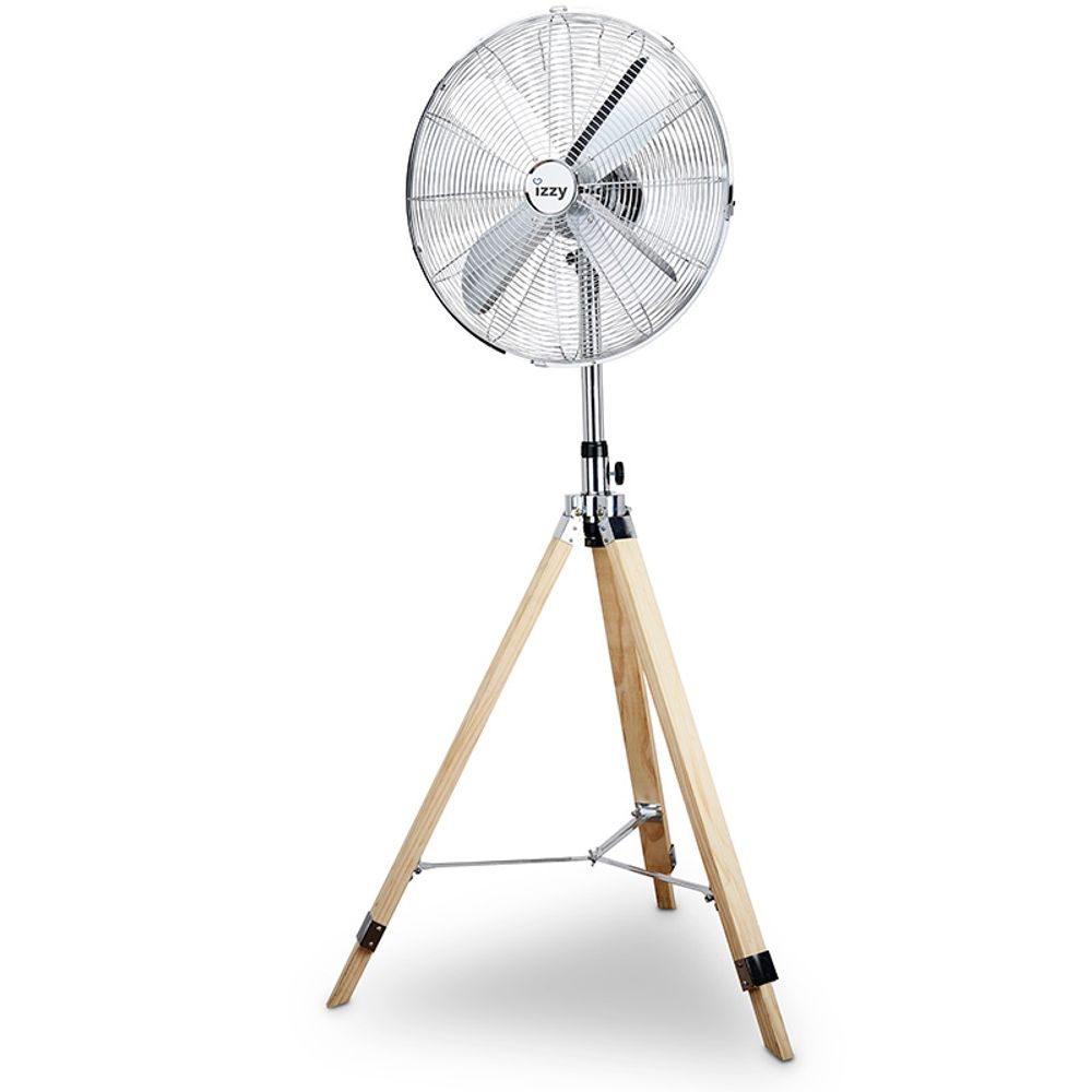 Ανεμιστήρας δαπέδου Izzy F45 ισχύος 60 Watt, με μεταλλικό σώμα, τρίποδη μεταλλική βάση από μασίφ ξύλο για εξαιρετική σταθερότητα και 3 ταχύτητες.