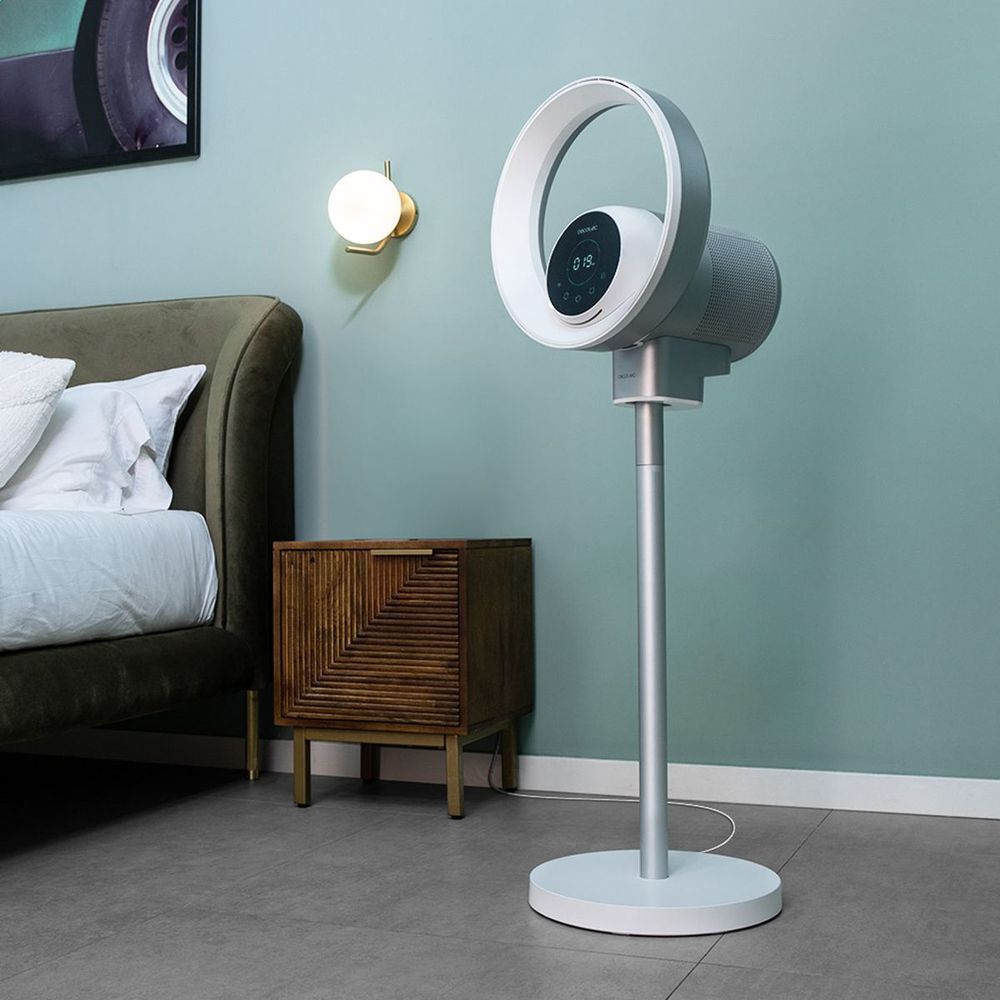 Ανεμιστήρας δαπέδου και καθαριστής αέρα Cecotec με ισχύ 35W, μοτέρ DC, 9 ταχύτητες και 4 λειτουργίες, οθόνη αφής και δυνατότητα περιστροφής του ανεμιστήρα για μεγαλύτερη κάλυψη του χώρου.