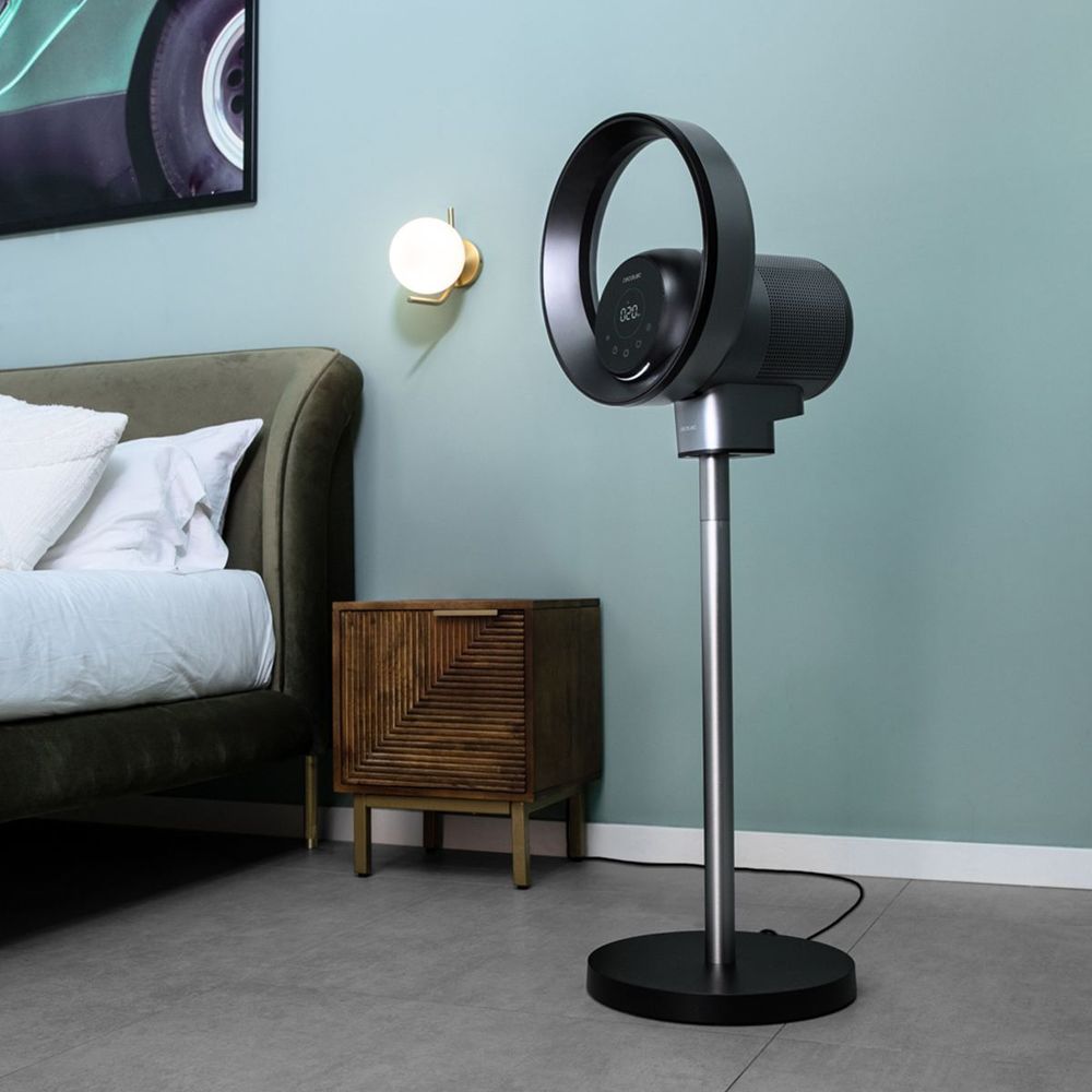 Ανεμιστήρας δαπέδου και καθαριστής αέρα Cecotec με ισχύ 35W, μοτέρ DC, 9 ταχύτητες και 4 λειτουργίες, οθόνη αφής και δυνατότητα περιστροφής του ανεμιστήρα για μεγαλύτερη κάλυψη του χώρου.