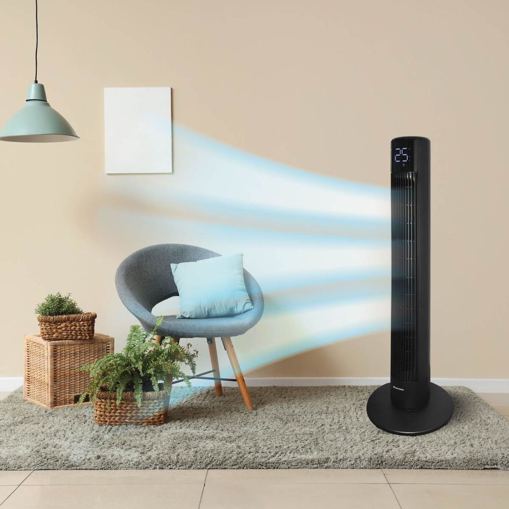 DC μοτέρ, Ισχυρός και αθόρυβος, Με ιονιστή, LED οθόνη με ένδειξη θερμοκρασίας χώρου, 8 ταχύτητες, 5 λειτουργίες, Χειριστήριο, 80 ͦή 120 ͦλειτουργία περιστροφής, Χρονοδιακόπτης: 1-24 ωρών, Σχεδιασμός χωρίς πτερύγια, Προστασία από υπερθέρμανση