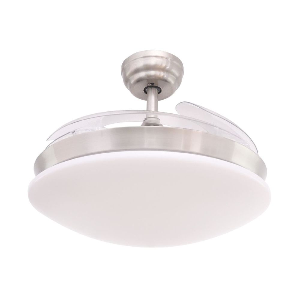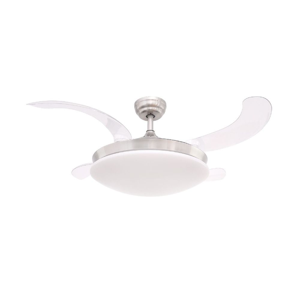 Ανεμιστήρας οροφής Eurolamp με 4 ανοιγοκλειόμενα πτερύγια και ενσωματωμένο LED φωτισμό. Με δυνατότητα απομακρυσμένης χρήσης με τηλεχειριστήριο, ιδανικό για χώρους έως 20m².