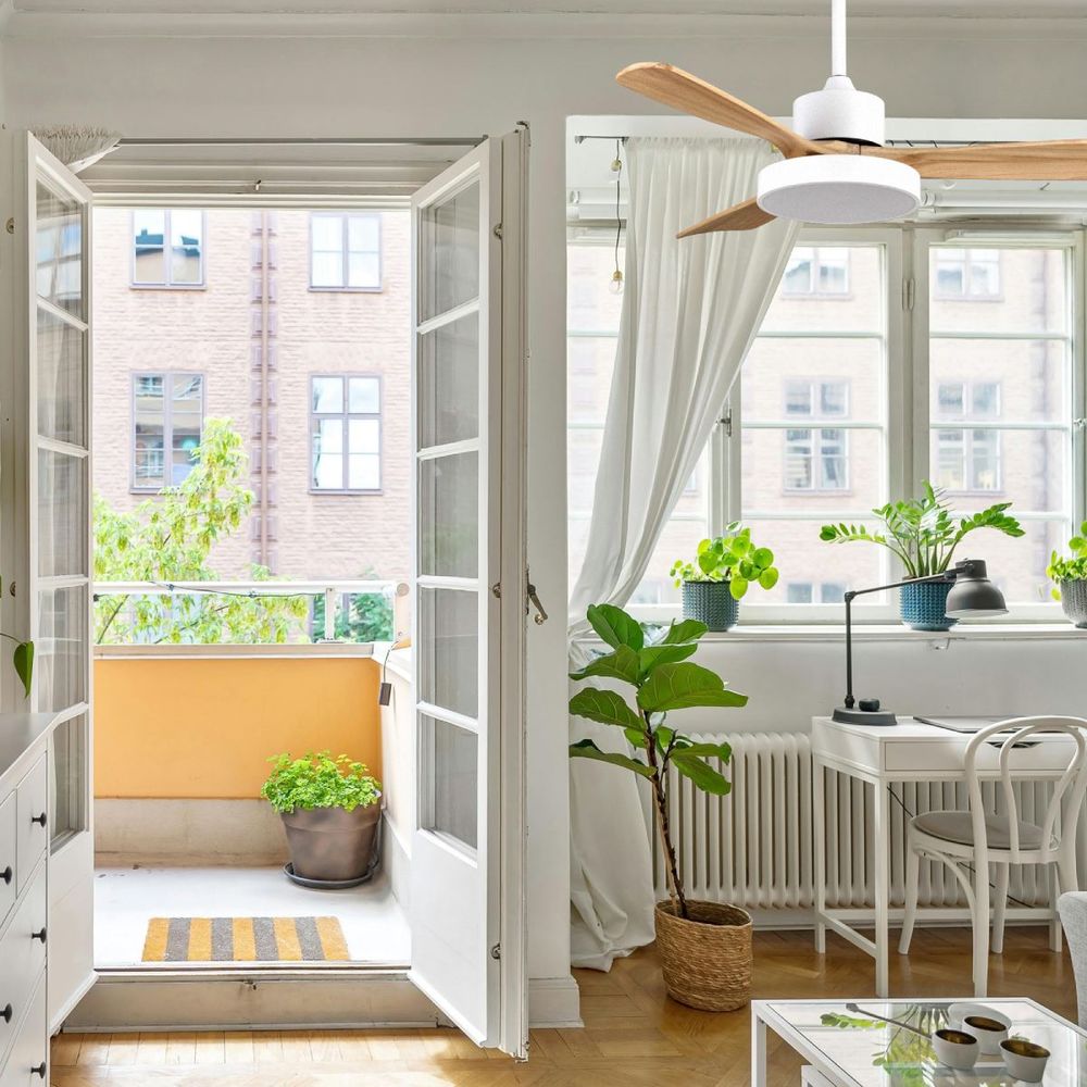 Ανεμιστήρας οροφής Eurolamp με φως, 3 πτερύγια και 6 ταχύτητες. Με δυνατότητα απομακρυσμένης χρήσης με τηλεχειριστήριο και χρονοδιακόπτη έως 4 ώρες.