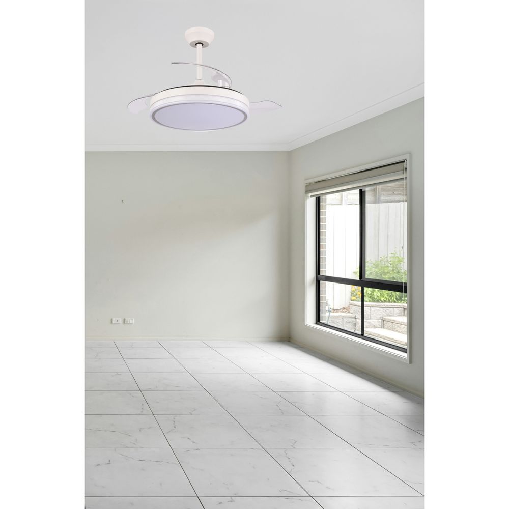 Ο ανεμιστήρας οροφής σε λευκό-νίκελ χρώμα με ανοίγοκλειόμενες φτερωτές, LED φως και τηλεχειριστήριο Φ107 είναι ιδανικός για κάθε εποχή. Διαθέτει DC μοτέρ 32W και LED φως 36W, προσφέροντας υψηλή απόδοση φωτισμού με 100 lumen ανά watt. Είναι μια εξαιρετική επιλογή για να διατηρείς τον χώρο σου φωτεινό και άνετο όλο το χρόνο.