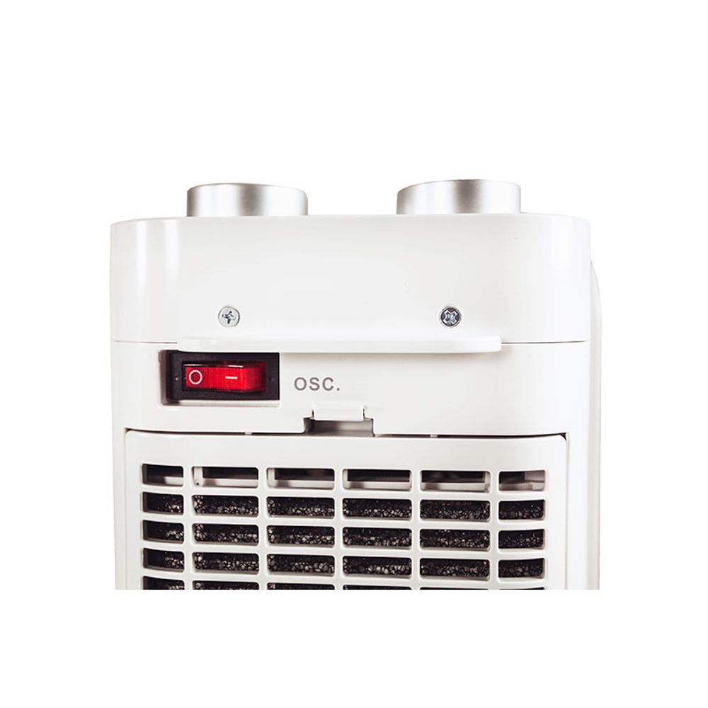 Κεραμικό αερόθερμο που καλύπτει χώρους 60 τ.μ. με μηχανικό χειριστήριο με ρυθμιζόμενο θερμοστάτη χώρου και 3 ρυθμίσεις ισχύος: θέρμανση 2000W / θέρμανση 1000W και λειτουργία ανεμιστήρα. Επιπλέον, παρέχει δυνατότητα αυτόματης περιστροφής με διακόπτη, φίλτρο αέρα στη πίσω πλευρά και αποσπώμενο για καθαρισμό.