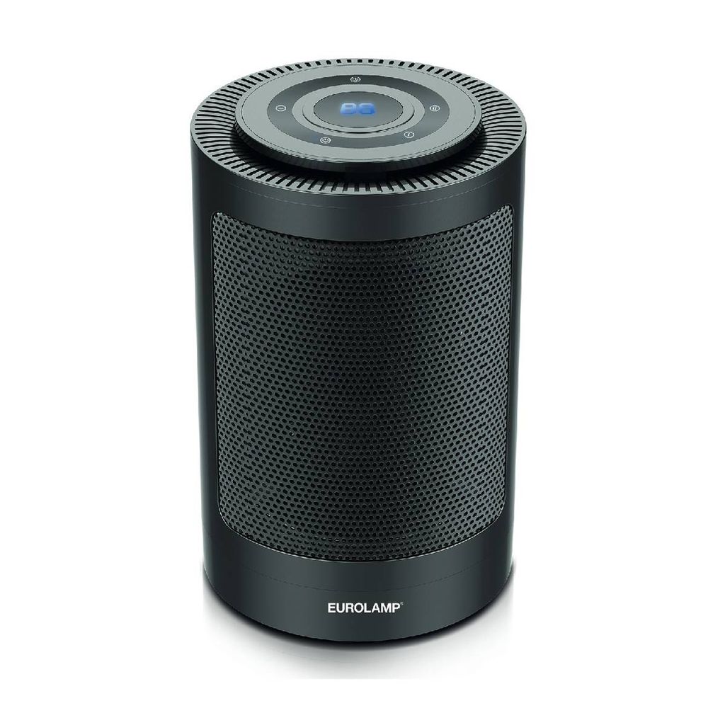 Κεραμικό αερόθερμο Eurolamp με ισχύ 1500W και τηλεχειριστήριο, ιδανικό για χώρους έως 25m². Με οθόνη LED, πίνακα ελέγχου, διακόπτη ασφαλείας, προστασία υπερθέρμανσης και χρονοδιακόπτη 8 ωρών.