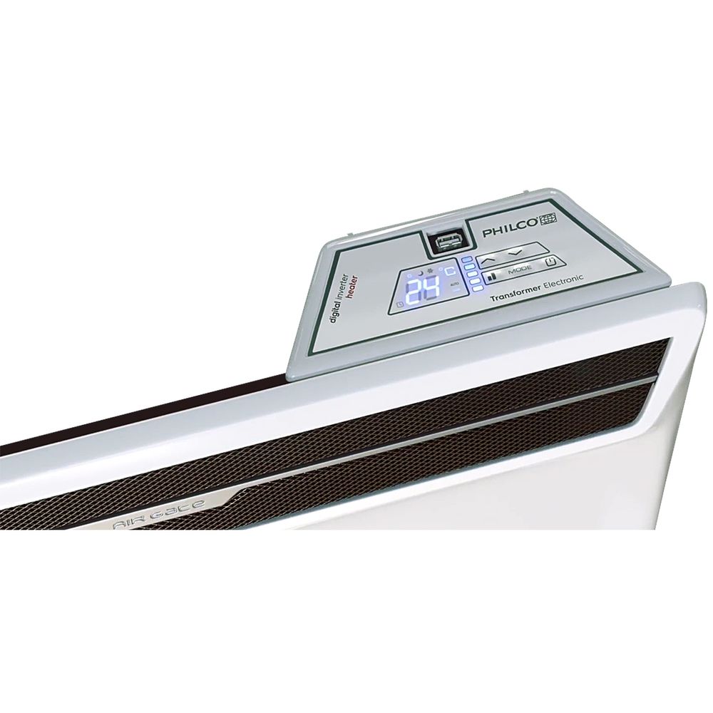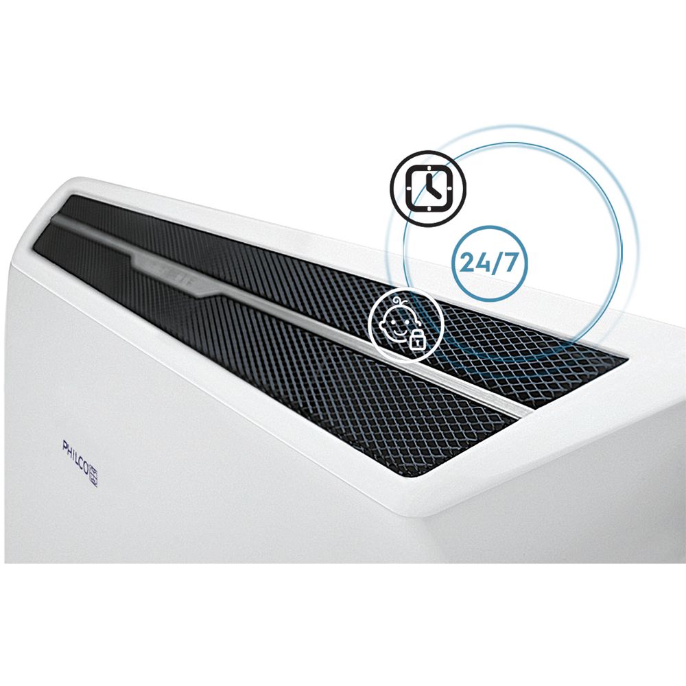 Θερμοπομπός Inverter Philco με 48% χαμηλότερη κατανάλωση, αντίσταση SX-DUOS για 15% ταχύτερη θέρμανση, IP24 για χρήση σε μπάνιο, θερμοστάτη ακριβείας 0,1°C, Child Lock, αισθητήρα παραθύρου, χρονοδιακόπτη 24/7 και αυτόματη ρύθμιση ισχύος για μέγιστη οικονομία και ασφάλεια.