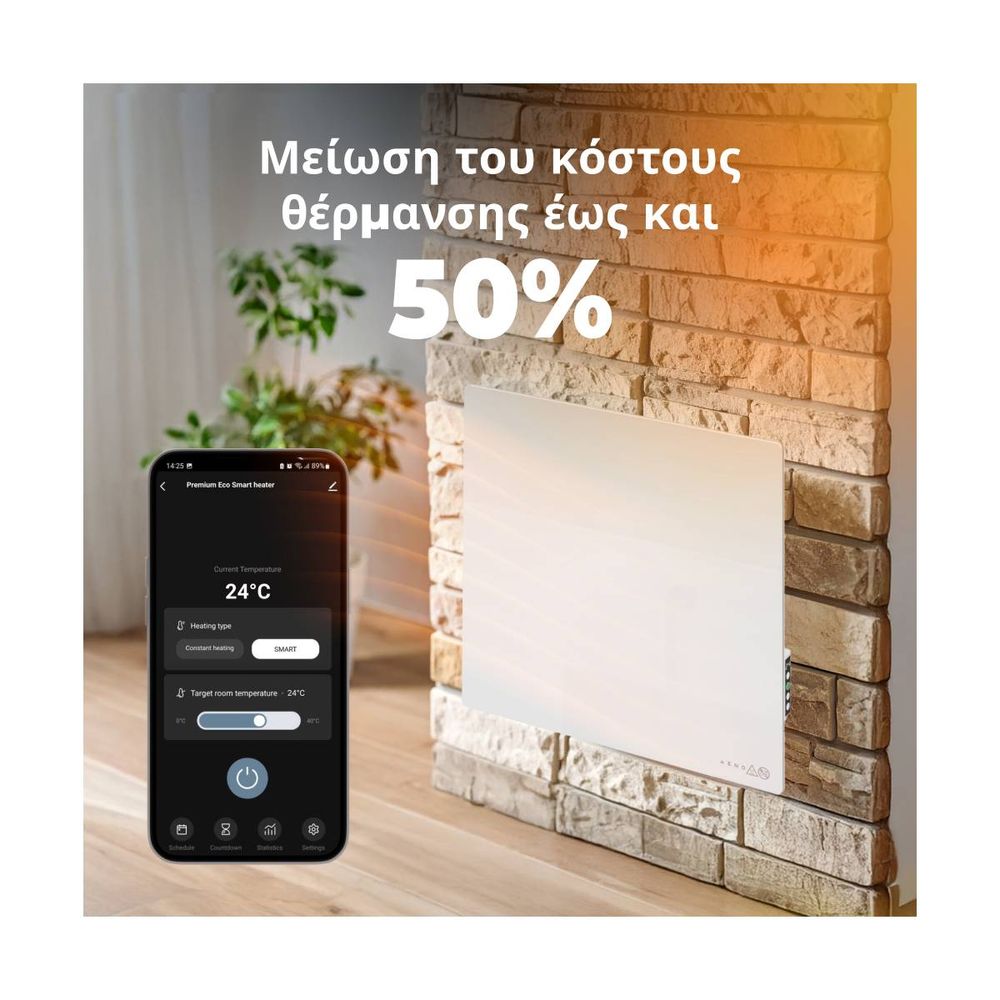 Ηλεκτρονικός Θερμοστάτης, IP44,προστασία υπερθέρμανσης, διακόπτης ανατροπής, δυνατότητα λειτουργίας και προγραμματισμού μέσω εφαρμογής