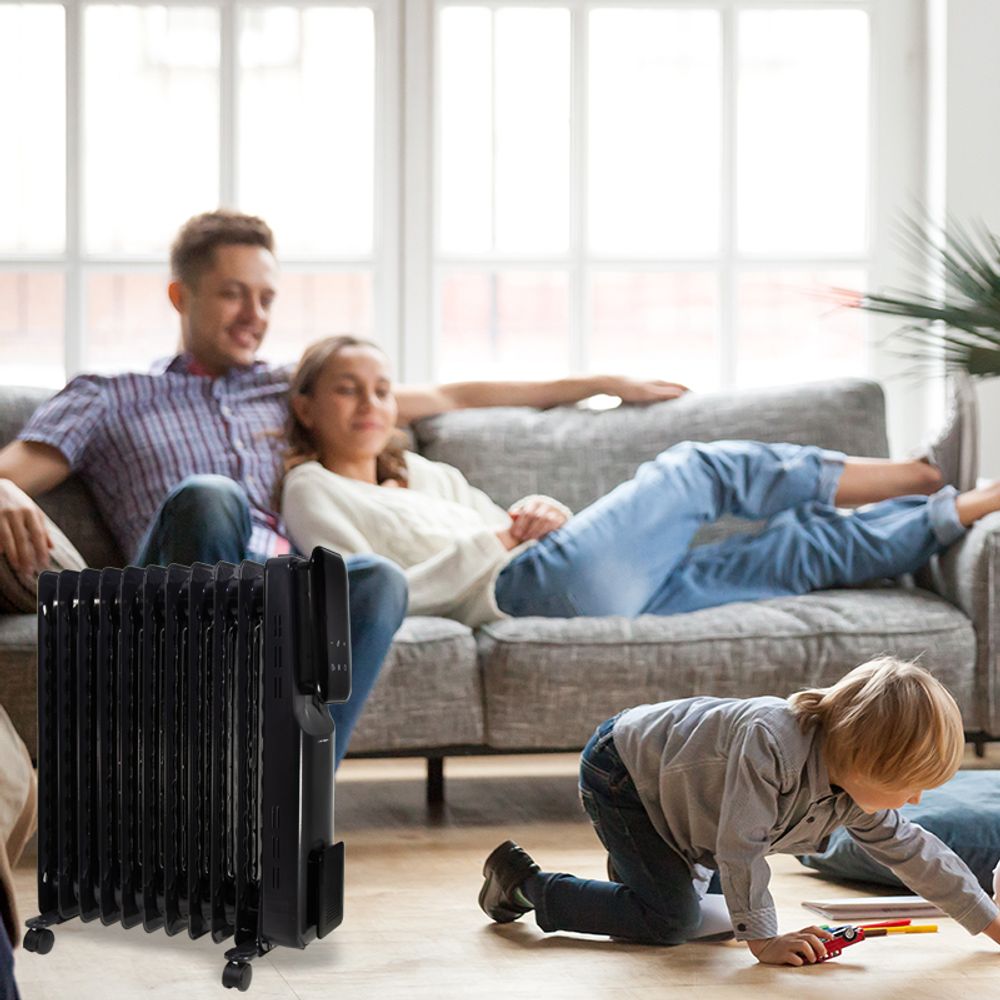 Το καλοριφέρ λαδιού με 11 φέτες Gruppe 01-YHA01E-11 2500W διαθέτει οθόνη με ψηφιακές ενδείξεις, ροδάκια για εύκολη μεταφορά και 3 επίπεδα ισχύος.