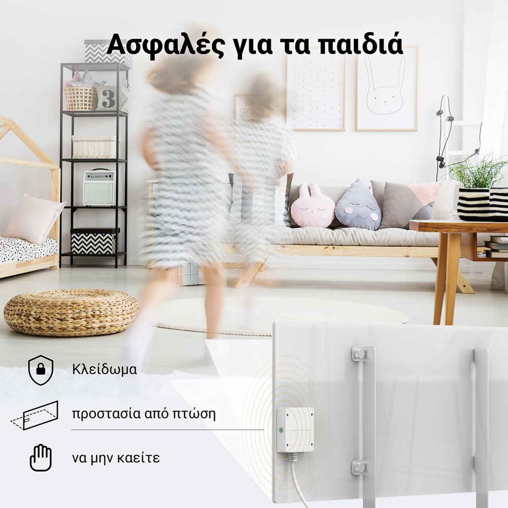 Θερμαντικό Πάνελ AGH0001S από την εταιρεία Aeno με αισθητικό και μινιμαλιστικό σχεδιασμό, ισχύ 700W+, με καινοτόμο υπέρυθρη θέρμανση, έλεγχο μέσω κουμπιού ή της εφαρμογής AENO App και με μέγιστη ασφάλεια για παιδιά και κατοικίδια καθώς προσφέρει προστασία από τυχαία ενεργοποίηση από παιδί μέσω του κλειδώματος γονικός έλεγχος στην εφαρμογή.