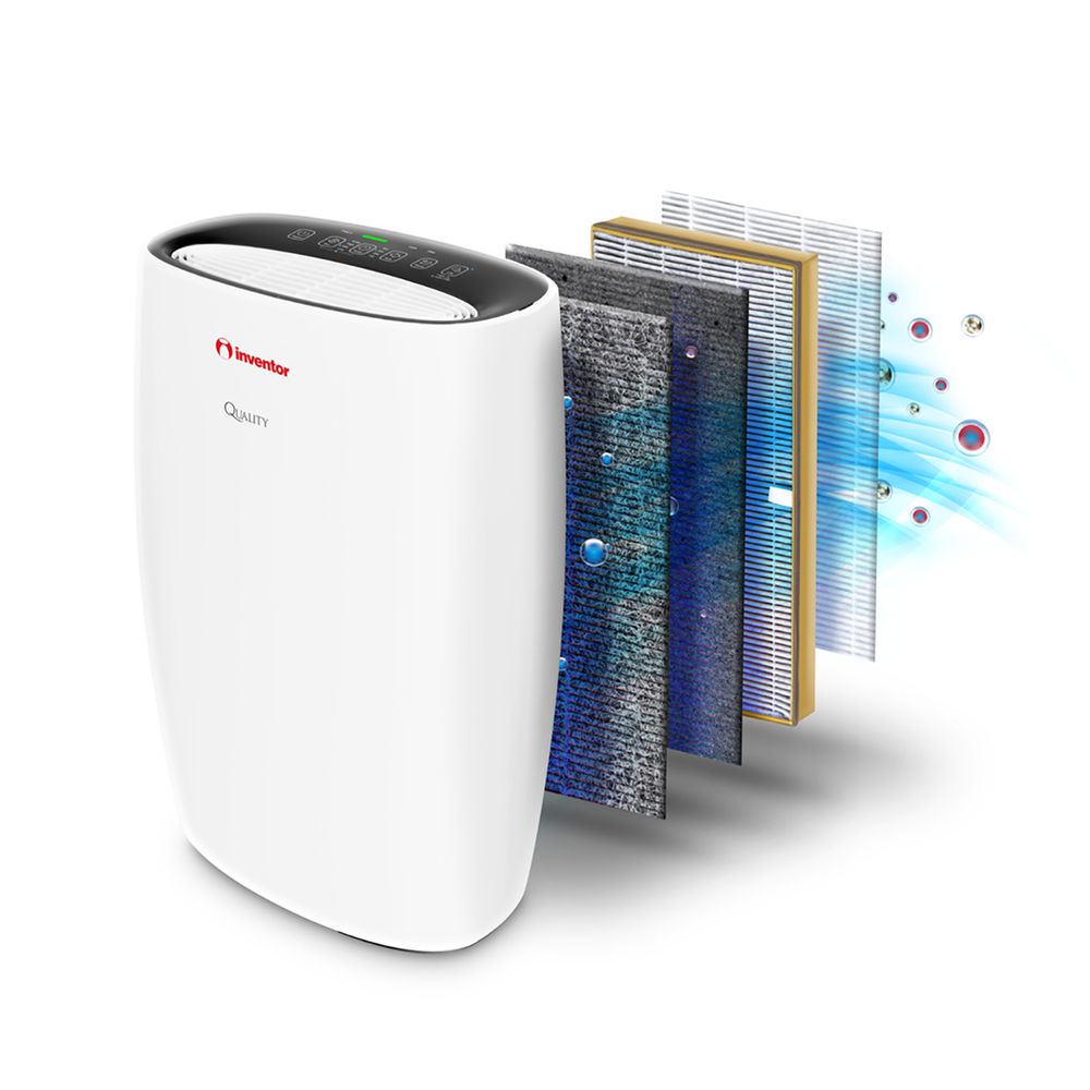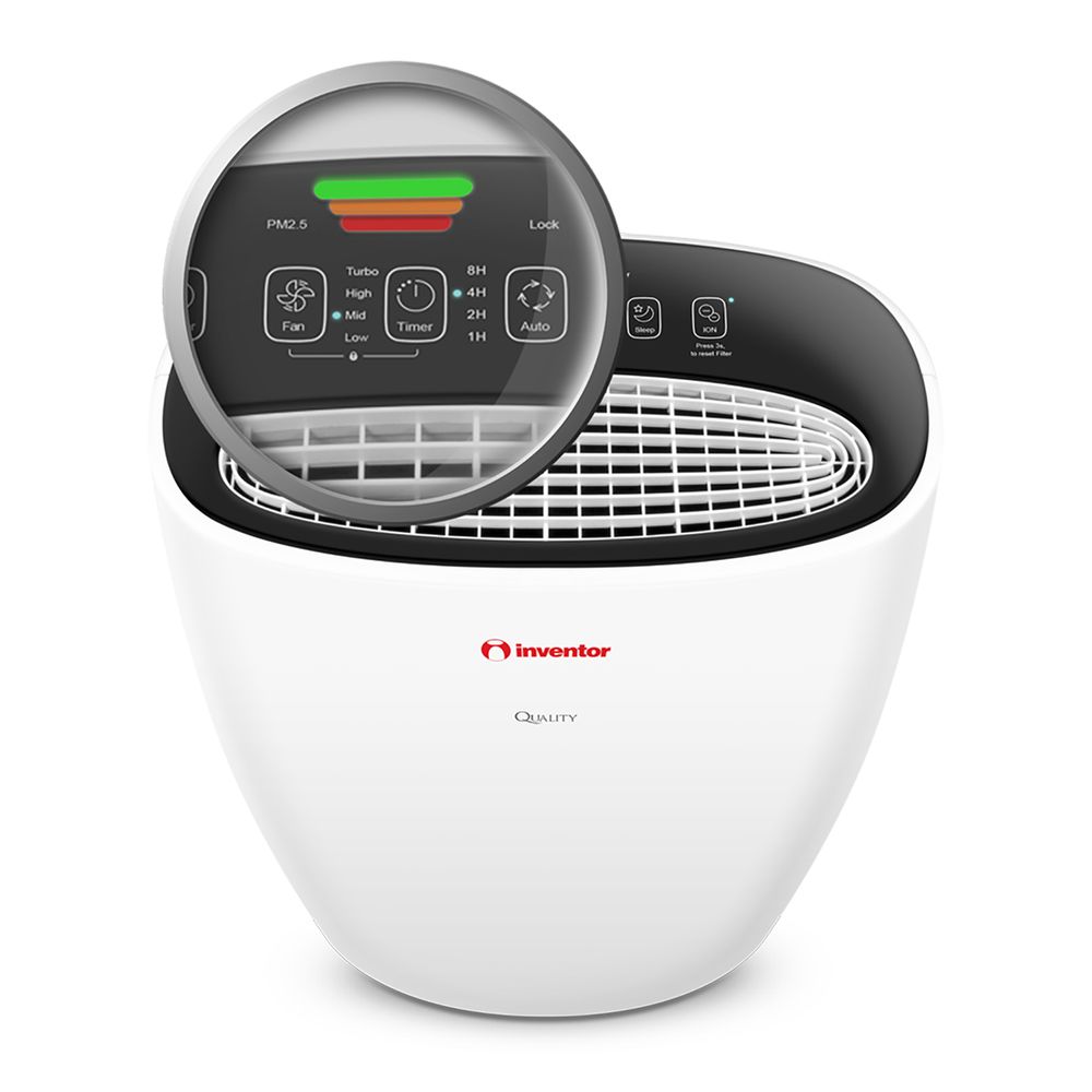 Ο καθαριστής αέρα Inventor Quality βοηθάει ώστε να απολαμβάνετε υγιεινή ατμόσφαιρα εσύ και η οικογένειά σου. Η φωτεινή ένδειξη LED που διαθέτει σου δίνει άμεση και αξιόπιστη διάγνωση της ποιότητας αέρα στον χώρο σου ενώ το δραστικό φίλτρο HEPA, βοηθάει στην απομάκρυνση των ανεπιθύμητων μικροοργανισμών και σωματιδίων σκόνης από τον χώρο σου, αφήνοντας την ατμόσφαιρα φρέσκια και ευχάριστη. Η δράση του ενισχύεται, αφού ο αέρας διέρχεται από 4 στάδια φιλτραρίσματος.