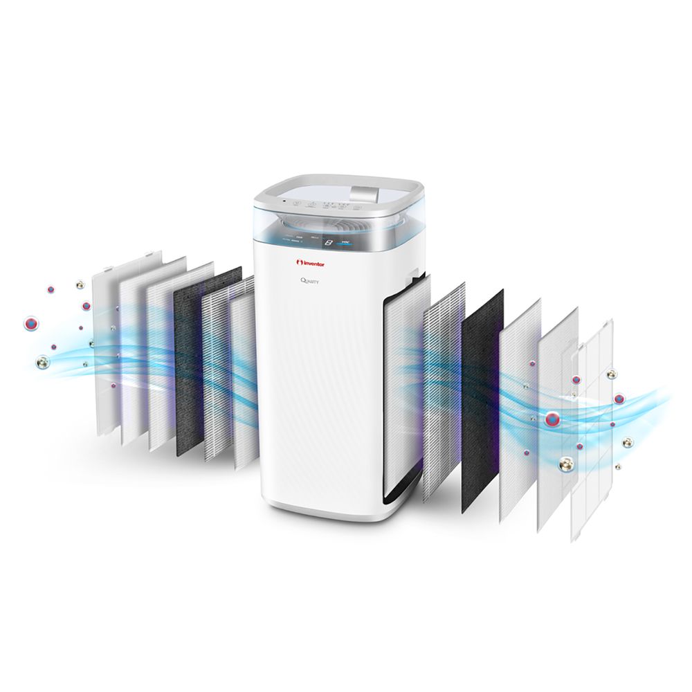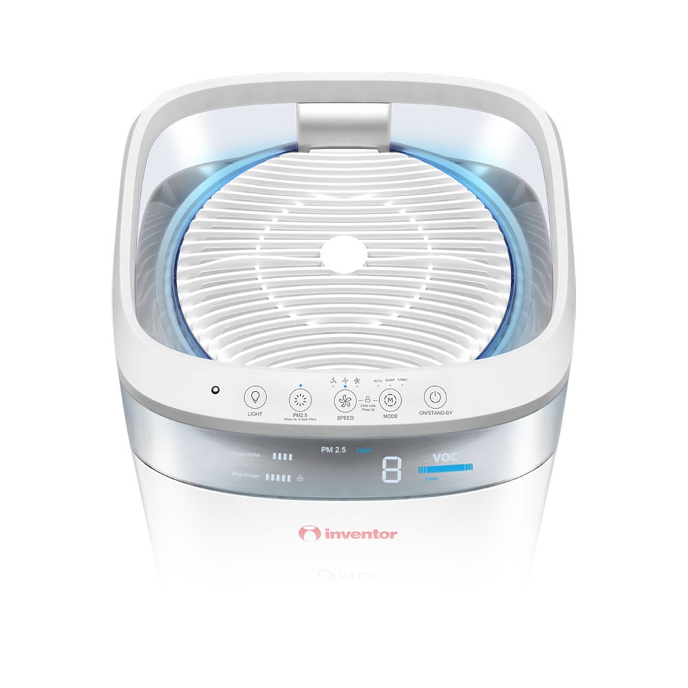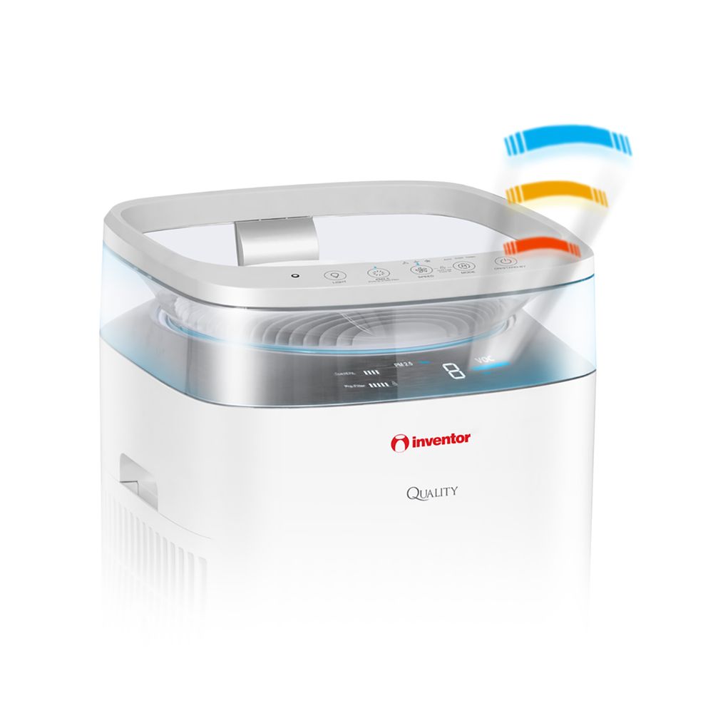 Ο καθαριστής αέρα Inventor Quality βοηθάει στη βελτιστοποίηση του περιβάλλοντος του σπιτιού για εσένα και την οικογένειά σου. Η φωτεινή ένδειξη LED που διαθέτει σου δίνει άμεση και αξιόπιστη διάγνωση της ποιότητας αέρα στον χώρο σου ενώ το δραστικό φίλτρο HEPA, βοηθάει στην απομάκρυνση από τους ανεπιθύμητους μικροοργανισμούς και τα σωματίδια σκόνης από τον χώρο σου, αφήνοντας την ατμόσφαιρα φρέσκια και ευχάριστη. Η δράση του ενισχύεται, αφού ο αέρας διέρχεται από 6 στάδια φιλτραρίσματος.