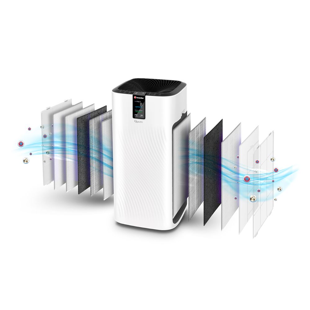 Ο καθαριστής αέρα Inventor Quality προσφέρει υγιεινό περιβάλλον για εσένα και την οικογένειά σου. Η φωτεινή ένδειξη LED που διαθέτει, σου δίνει άμεση και αξιόπιστη διάγνωση της ποιότητας αέρα στον χώρο σου, ενώ το δραστικό φίλτρο HEPA, βοηθάει στην απομάκρυνση των ανεπιθύμητων μικροοργανισμών και τα σωματίδια σκόνης από τον χώρο σου, αφήνοντας την ατμόσφαιρα πιο φρέσκια και ευχάριστη. Η δράση του ενισχύεται, αφού ο αέρας διέρχεται από 6 στάδια φιλτραρίσματος.