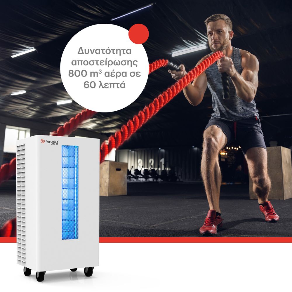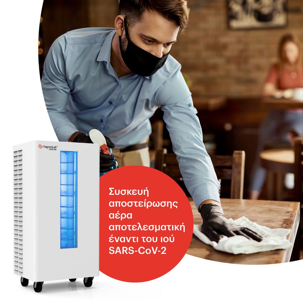 O καθαριστής αέρα FagronLab UVGI-80 είναι μια συσκευή δυναμικής αποστείρωσης αέρα ιδανική για χώρους αναμονής, ιατρεία, εμπορικά καταστήματα, γραφεία, εστιατόρια, δημόσιους οργανισμούς κ.α. Είναι σχεδιασμένος για δυναμική αποστείρωση αέρα με χρήση μικροβιοκτόνων λαμπτήρων υψηλής έντασης (UVC), ενώ σύμφωνα με μελέτη από ανεξάρτητο εργαστήριο στο Βέλγιο αποδείχθηκε ότι μετά από 10 δευτερόλεπτα έκθεσης στην συσκευή, υπήρξε σημαντικός αριθμός δειγμάτων με ολική απουσία SARS-CoV-2.