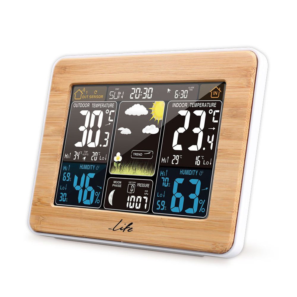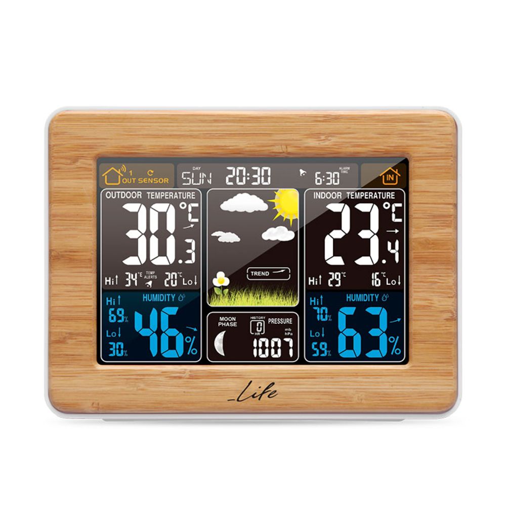 Bamboo μετεωρολογικός σταθμός με μεγάλη, έγχρωμη ψηφιακή LCD οθόνη 5.7", οπίσθιο φωτισμό LED και ασύρματο εξωτερικό αισθητήρα για πλήρη ενημέρωση των καιρικών συνθηκών στην περιοχή σου.