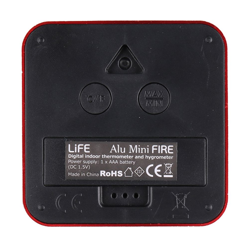 Μετεωρολογικός σταθμός Alu Mini FIRE από την εταιρεία Life, ο οποίος διαθέτει minimal design με πλαίσιο αλουμινίου, με εύρος μετρήσιμης εσωτερικής θερμοκρασίας 0 έως 50 βαθμούς κελσίου καθώς και εσωτερικής υγρασίας 20 -95% RH. Χάρη στην οθόνη LCD με μεγάλα ψηφία μπορείς εύκολα να παρακολουθείς τα επίπεδα θερμοκρασίας & υγρασίας.