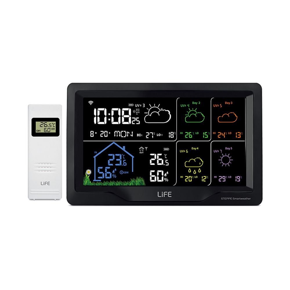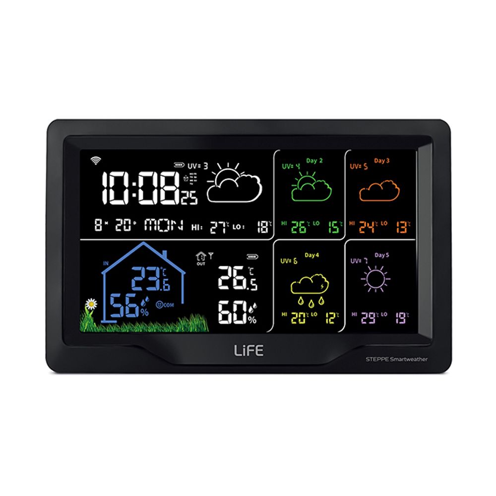 Μετεωρολογικός σταθμός Life με ασύρματο εξωτερικό αισθητήρα, σύνδεση Wi-Fi και πρόβλεψη καιρού 5 ημερών. Με μεγάλη οθόνη LCD 7.5" με εξαιρετικά χρώματα, υψηλή φωτεινότητα, ευκρίνεια και μεγάλες γωνίες θέασης.