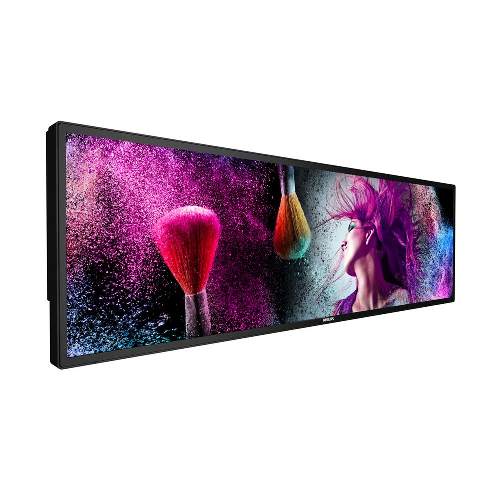 Διεύρυνε τη θέα. Διεύρυνε τις ευκαιρίες σου με τη Philips S-Line. Με τη μοναδική σχεδίαση 32:9 και την ανάλυση 1920 x 540, την έξοδο υψηλής φωτεινότητας και την ευέλικτη σύνδεση, η υπερευρεία οθόνη ψηφιακής σήμανσης δείχνει περισσότερα σε λιγότερο χώρο.