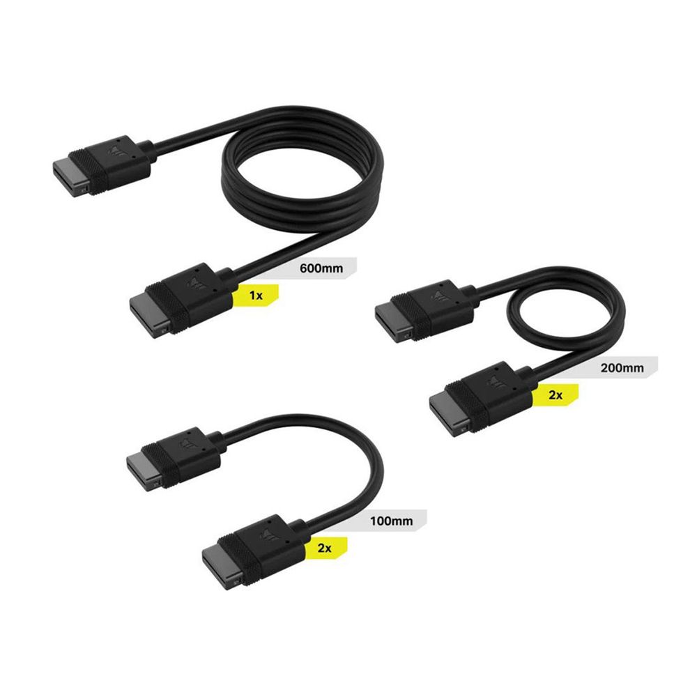 Είδος: Extension Cable Kit, χρώμα: Μαύρο, περιεχόμενα συσκευασίας: 1x iCUE LINK 600mm straight/straight cable, 2x iCUE LINK 200mm straight/straight cables, 2x iCUE LINK 100mm straight/straight cables