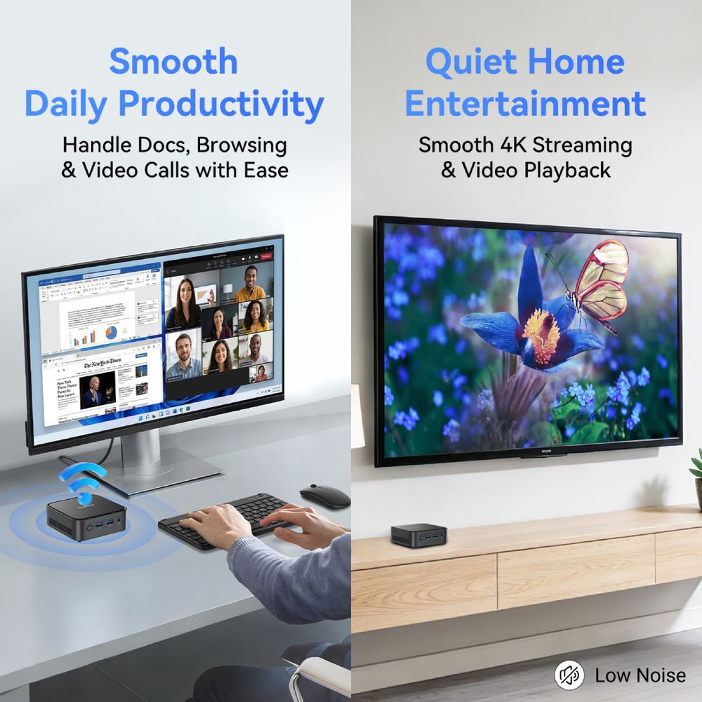 Υποστήριξη Διπλής Οθόνης, Win11 Προεγκατεστημενα, Καλώδιο HDMI, BT Πληκτρολογίο & Ποντίκι στη Συσκευασία