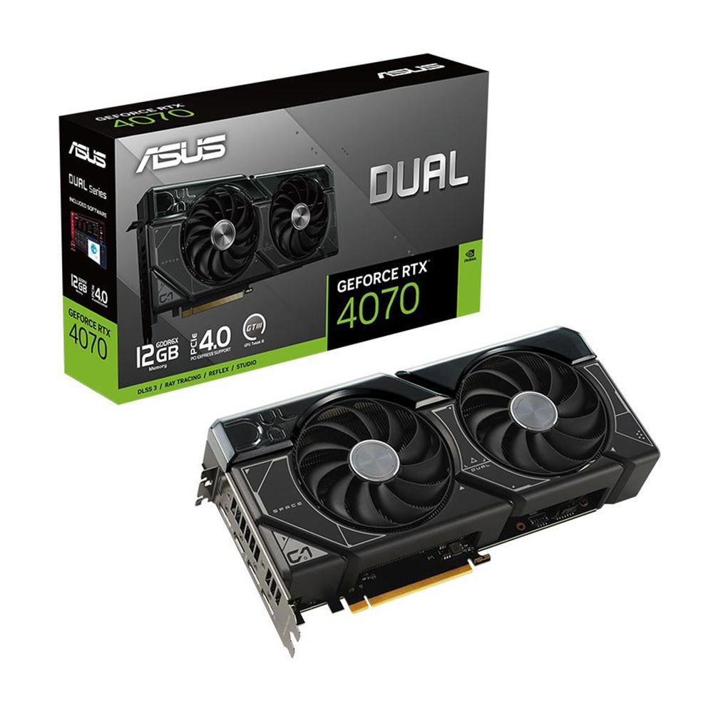 Διαθέτοντας την πιο πρόσφατη αρχιτεκτονική NVIDIA Ampere, η ASUS Dual GeForce RTX 4070 συνδυάζει δυναμική θερμική απόδοση με ευρεία συμβατότητα. Προηγμένες λύσεις ψύξης από κορυφαίες κάρτες γραφικών — συμπεριλαμβανομένων δύο ανεμιστήρων τεχνολογίας Axial για μεγιστοποίηση της ροής αέρα προς την ψύκτρα — συσκευάζονται στην κάρτα μήκους 26,7 cm, 2,56 slot, παρέχοντας περισσότερη ισχύ σε λιγότερο χώρο. Η τέλεια επιλογή για παίκτες που θέλουν βαριά απόδοση γραφικών σε μια συμπαγή κατασκευή.