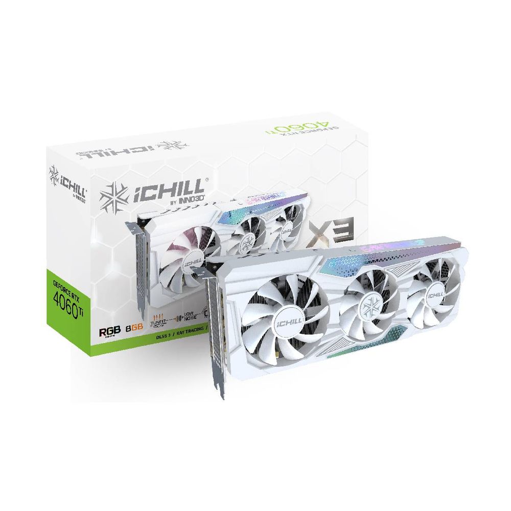 Η GeForce RTX 4060 Ti iCHILL X3 White από την Inno 3D, σου προσφέρει υψηλή ταχύτητα επεξεργασίας, μεγάλη χωρητικότητα μνήμης και προηγμένες τεχνολογίες απεικόνισης.