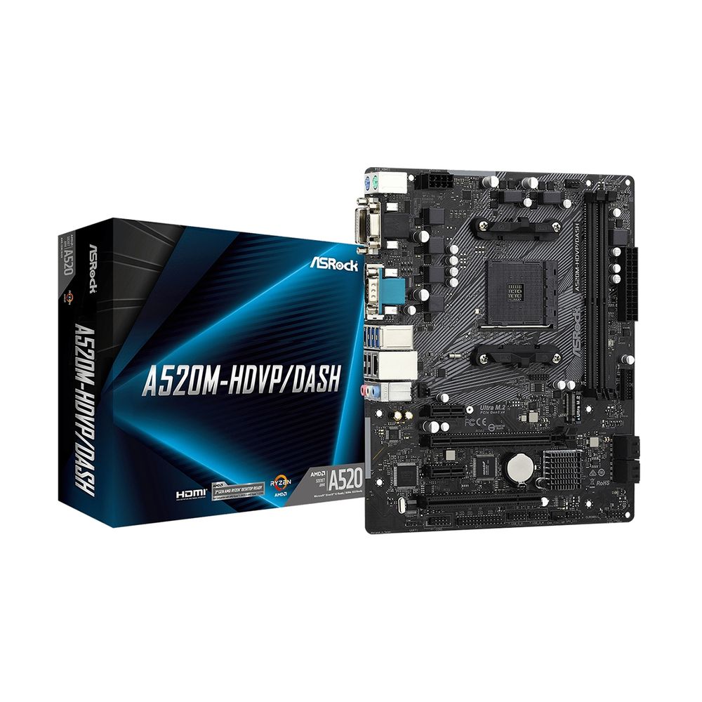 Η μητρική A520M-HDVP/DASH υποστηρίζει επεξεργαστές AMD AM4 Socket Ryzen 3000, 4000 G-Series και 5000. Υποστηρίζει συχνότητα μνήμης DDR4 4733+ (OC) και ήχο 7.1 CH HD Audio. Τέλος, υποστηρίζει PCIe 3.0, SATA 3 και M.2, ενώ διαθέτει 6 θύρες USB 3.2 και USB 2.0.