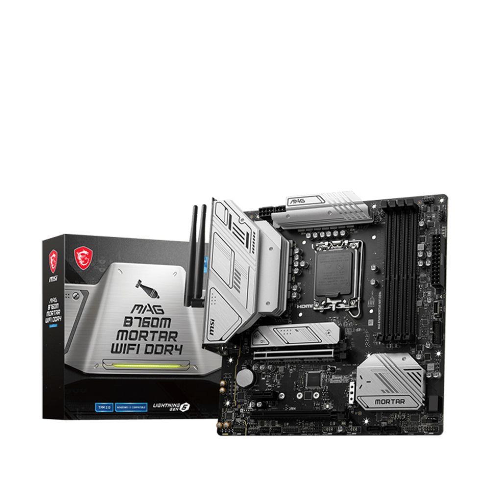 Μητρική MAG B760M MORTAR WIFI DDR4 από την εταιρεία MSI, με socket 1700 και chipset Intel B760 Express Chipset και δέχεται 13ης και 12ης γενιάς Intel Core, Pentium Gold και Celeron. Υποστηρίζει DDR4 ως 128GB, PCIe 5.0 για κάρτες γραφικών και PCIe 4.0 για storage.