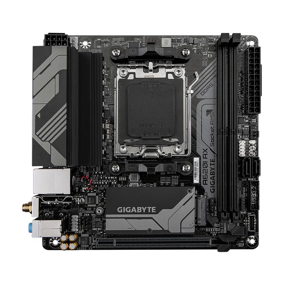 Μητρική A620I AX (Rev 1.0) από την εταιρεία Gigabyte, με Chipset AMD A620, υποδοχή socket AM5, υποστήριξη μνήμης DDR5 και Wi-Fi.