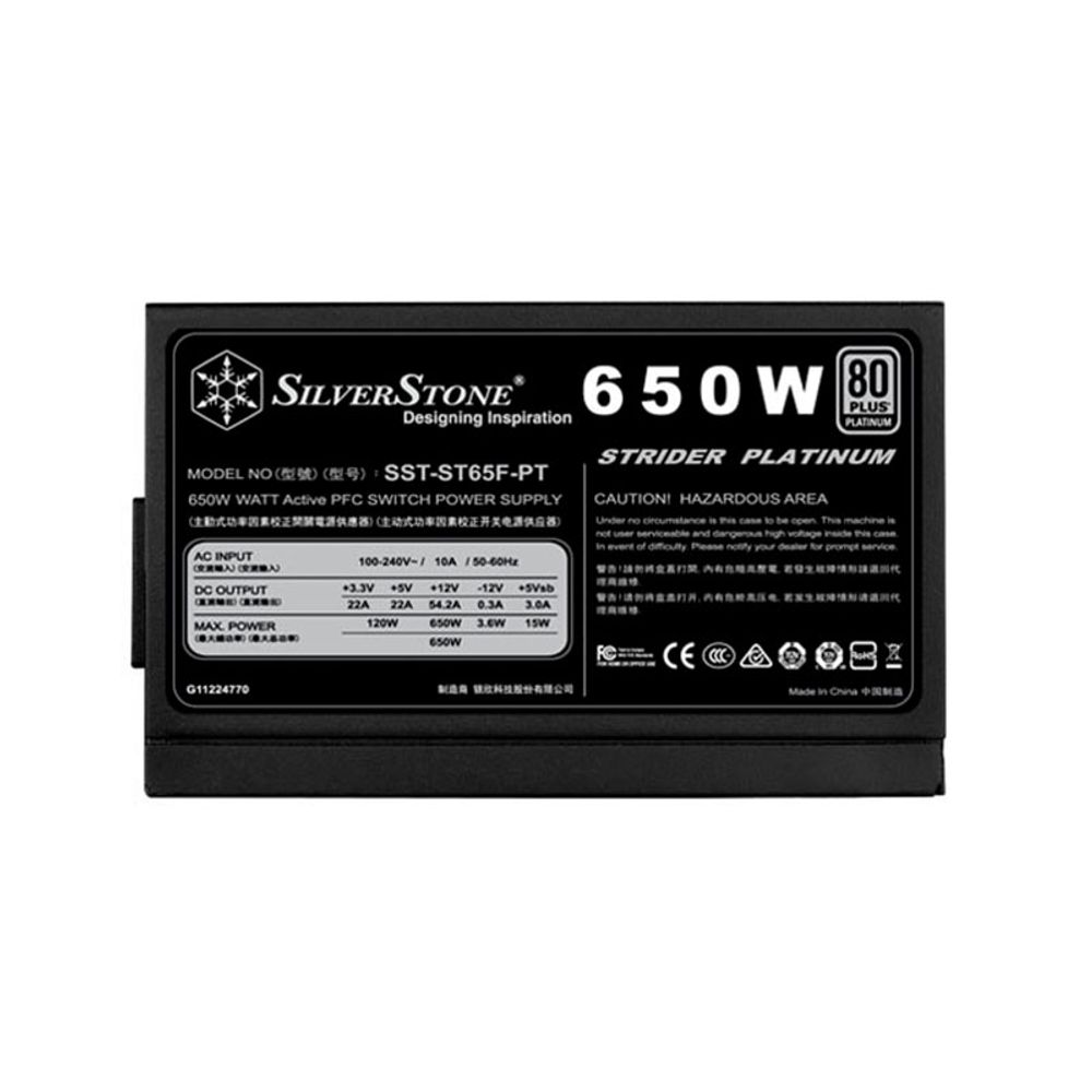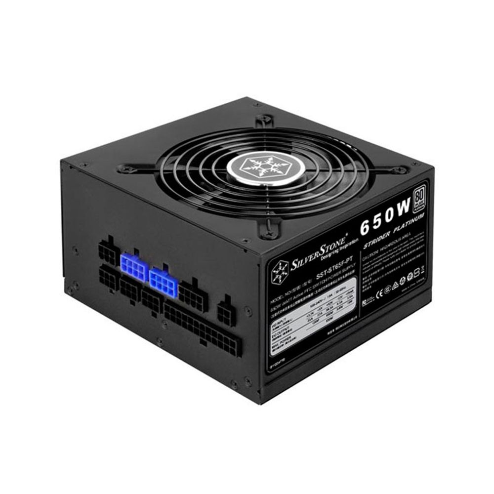 Το fully modular ΑΤΧ τροφοδοτικό Silverstone ST65F-PT Strider με ισχύ 650W και πιστοποίηση 80 Plus Platinum συνδυάζει άψογα την υψηλή αποδοτικότητα με την ανώτατη ποιότητα. Ο ανεμιστήρας 120 mm με semi-fanless λειτουργία και μαγνητικό φίλτρο υπόσχεται ότι το PC σου θα έχει μεγάλη αντοχή στον χρόνο ενώ το μονό κανάλι +12V είναι ιδανικό για overlclocking.