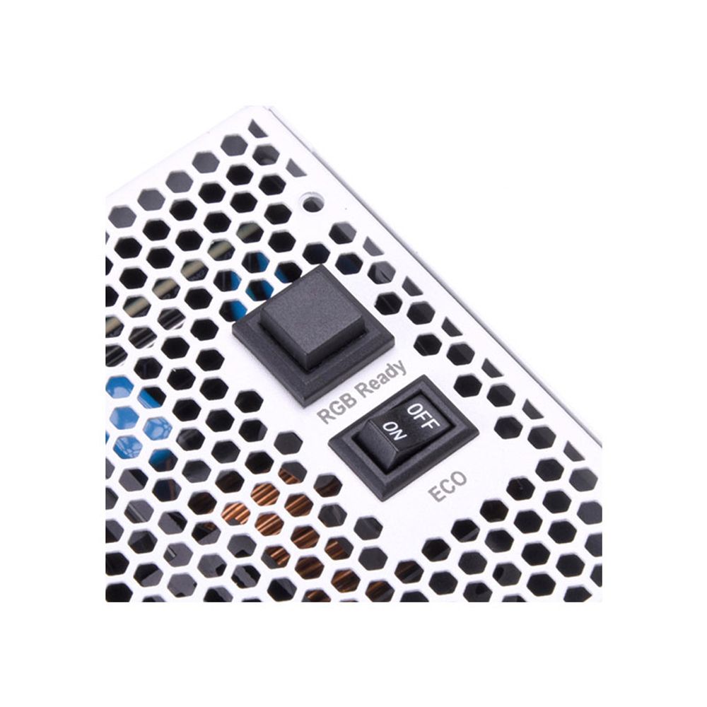 Το τροφοδοτικό Superflower LEADEX 3 με 16 λειτουργίες RGB τραβάει όλα τα βλέμματα. Μπορεί επίσης να ελεγχθεί μέσω της μητρικής από ASUS, Gigabyte ή MSI με ένα 5V RGB header. Πέρα από την εντυπωσιακή εμφάνισή του, εγγυάται υψηλές επιδόσεις και σταθερή παροχή ισχύος. Ο ανεμιστήρας 130 mm με προηγμένη λειτουργία θερμικού ελέγχου διασφαλίζει ότι το gaming PC σου θα μπορεί να λειτουργεί υπό βαρύ φορτίο και να υποστηρίζει ακόμα και συστήματα με NVIDIA SLI ή ATI CrossFireX.