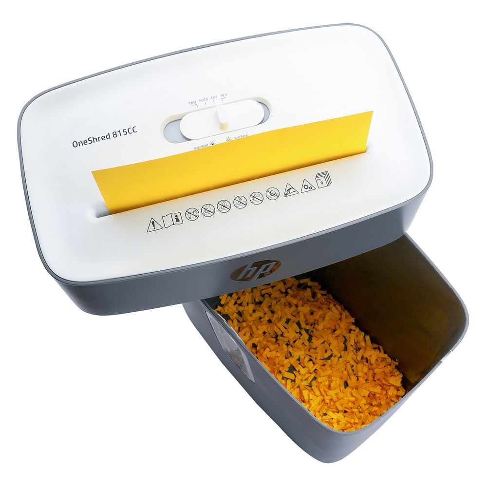 Καταστροφέας εγγράφων της εταιρείας HP με χωρητικότητα κάδου 15 λίτρα. Κόβει σε μικρά εγκάρσια κομμάτια παρέχοντας μεγαλύτερη ασφάλεια σε σχέση με τους καταστροφείς strip cut αλλά δουλεύει με χαμηλότερες ταχύτητες. Δέχεται 8 έγγραφα ανά λειτουργία για ταχύτερη καταστροφή περισσότερων εγγράφων.