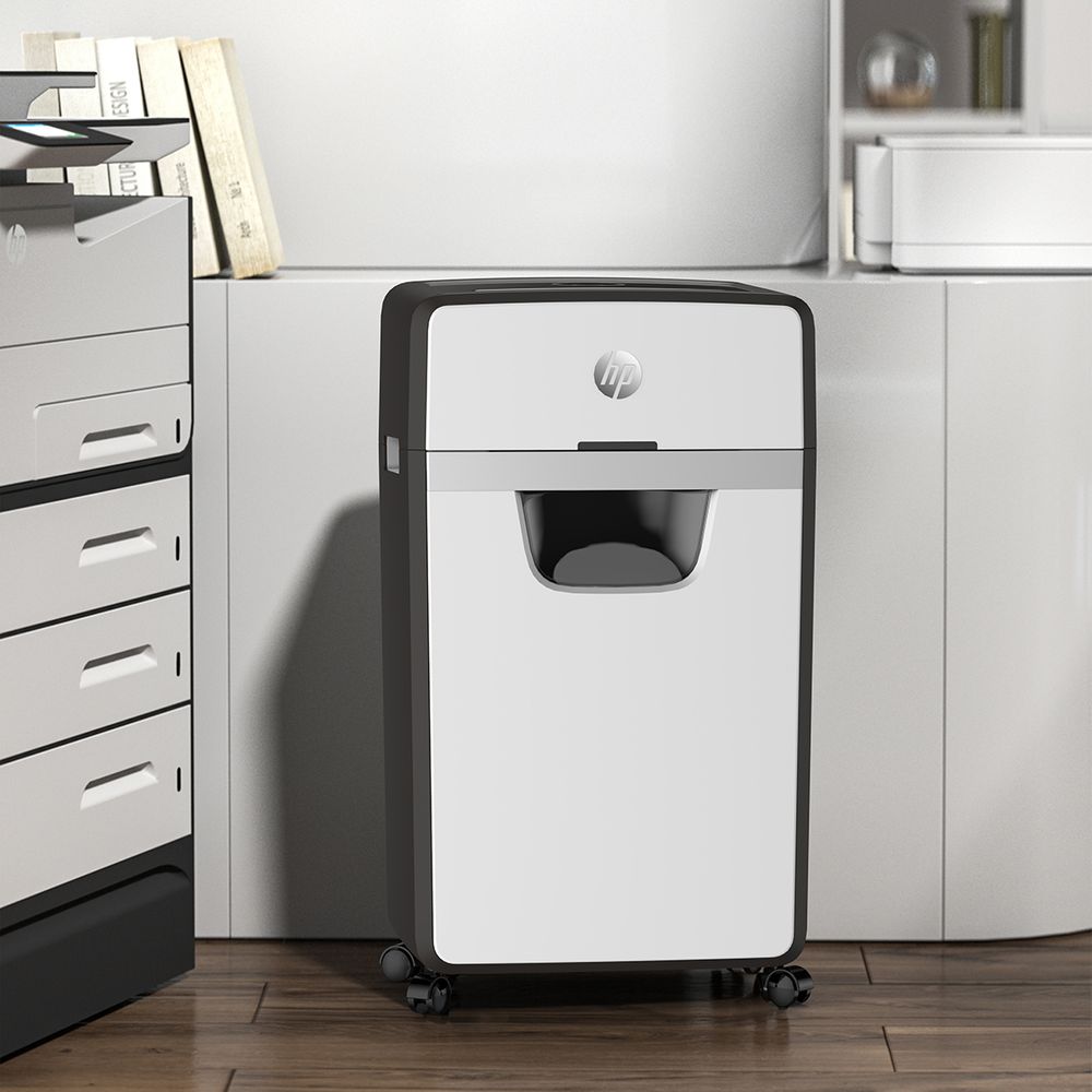 Καταστροφέας εγγράφων της εταιρείας HP με χωρητικότητα κάδου 30 λίτρα. Είναι η πιο ασφαλής μέθοδος κοπής, καθώς κόβει σε πολύ μικρά κομμάτια καθιστώντας το αδύνατο να ενωθούν ξανά, αλλά λειτουργεί με πιο χαμηλές ταχύτητες σε σύγκριση με τα υπόλοιπα είδη καταστροφέων. Δέχεται 16 έγγραφα ανά λειτουργία για ταχύτερη καταστροφή περισσότερων εγγράφων.