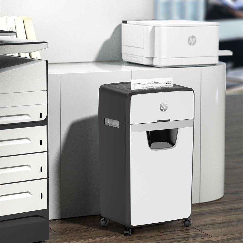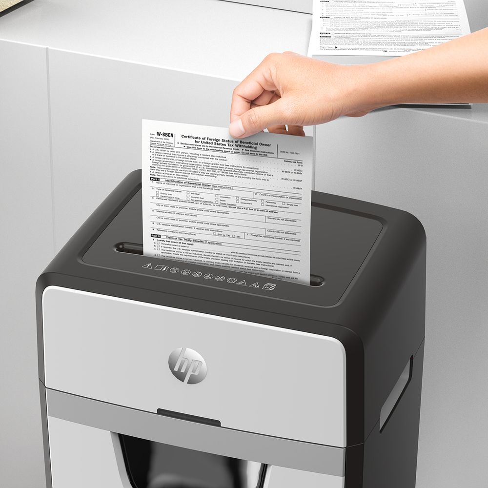 Καταστροφέας εγγράφων της εταιρείας HP με χωρητικότητα κάδου 30 λίτρα. Κόβει σε μικρά εγκάρσια κομμάτια παρέχοντας μεγαλύτερη ασφάλεια σε σχέση με τους καταστροφείς strip cut αλλά δουλεύει με χαμηλότερες ταχύτητες. Δέχεται 24 έγγραφα ανά λειτουργία για ταχύτερη καταστροφή περισσότερων εγγράφων.