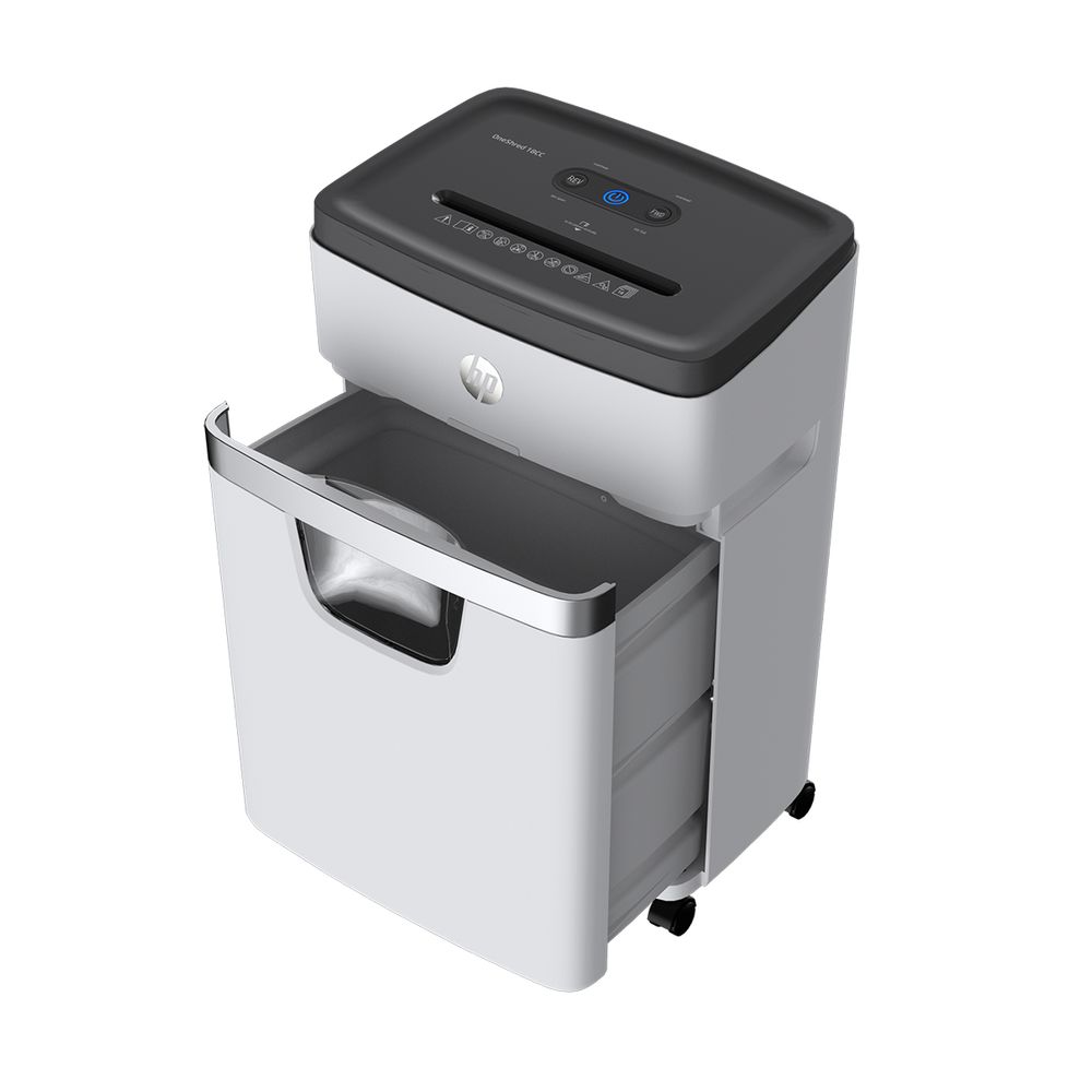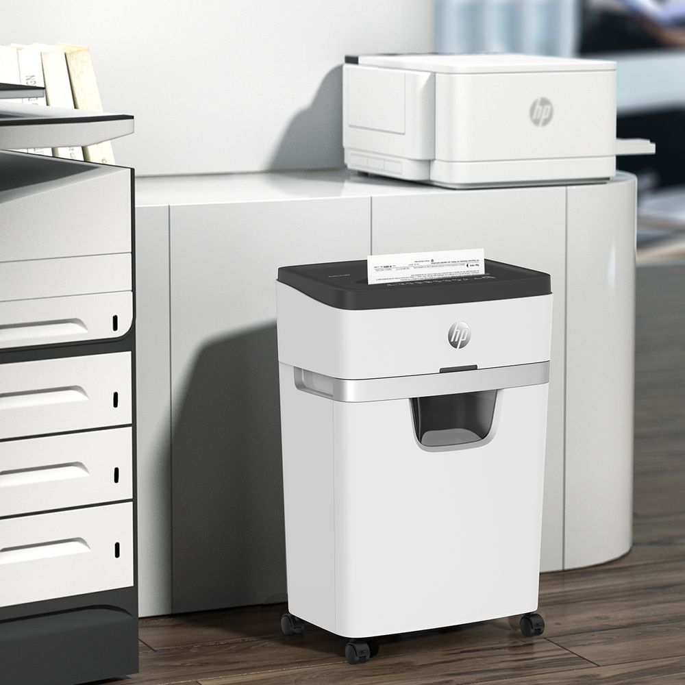 Καταστροφέας εγγράφων της εταιρείας HP με χωρητικότητα κάδου 25 λίτρα. Κόβει σε μικρά εγκάρσια κομμάτια παρέχοντας μεγαλύτερη ασφάλεια σε σχέση με τους καταστροφείς strip cut αλλά δουλεύει με χαμηλότερες ταχύτητες. Δέχεται 18 έγγραφα ανά λειτουργία για ταχύτερη καταστροφή περισσότερων εγγράφων.