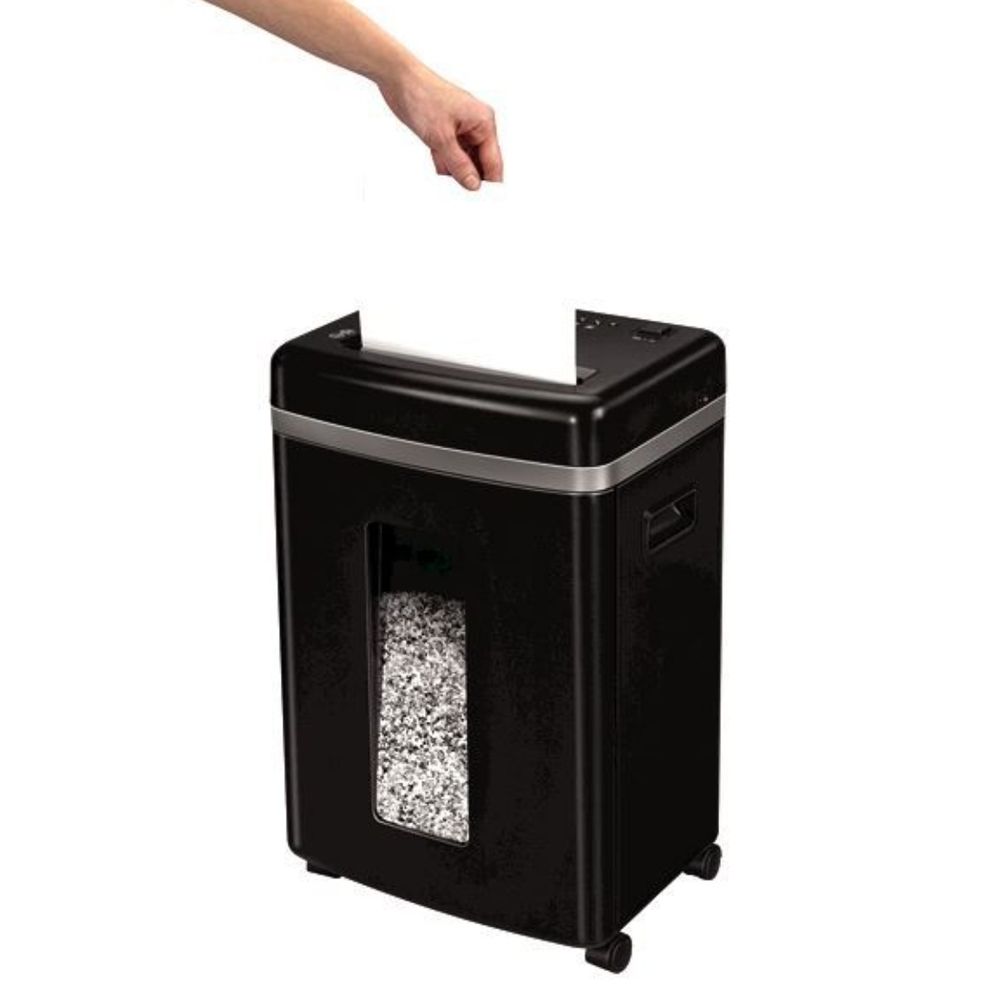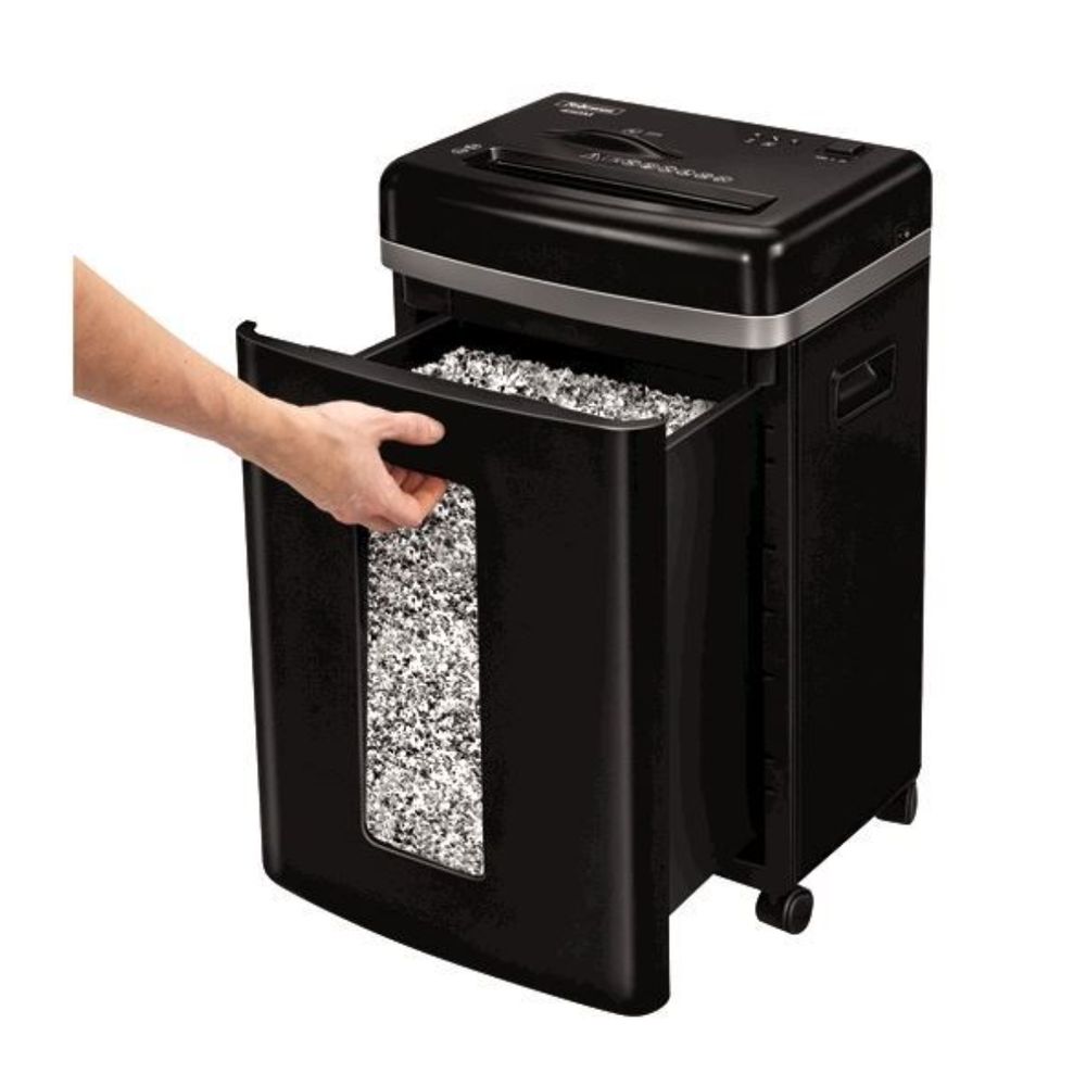 Ο καταστροφέας εγγράφων Fellowes 450M 4074101 κόβει έως 9 φύλλα ταυτόχρονα σε μικρά αποκόμματα 2 x 12 mm για μέγιστη ασφάλεια. Διαθέτει κάδο 22 λίτρων και μπορεί να καταστρέφει επίσης πιστωτικές κάρτες, συρραπτικά και CD/DVD, εξασφαλίζοντας ολοκληρωμένη προστασία των ευαίσθητων δεδομένων σου.