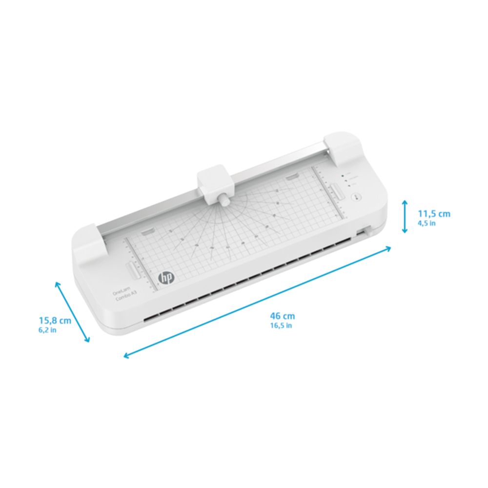 Το HP OneLam Combo A3 διαθέτει ενσωματωμένο κόπτη, το οποίο καθιστά εύκολο να κόψεις τα έγγραφά σου σε ευθεία, με καμπύλες ή διάτρητη μορφή. Αυτός ο φορτωτής είναι κατάλληλος τόσο για ζεστή όσο και για κρύα πλαστικοποίηση. Διαθέτει πάχος ταινίας 75/80 έως 125 μικρά, μπορείς να προστατεύσεις τις φωτογραφίες, τα χρονοδιαγράμματα ή τα σημαντικά έγγραφα από επαγγελματικές κάρτες έως και μορφή Α3 από βρωμιά και υγρασία.