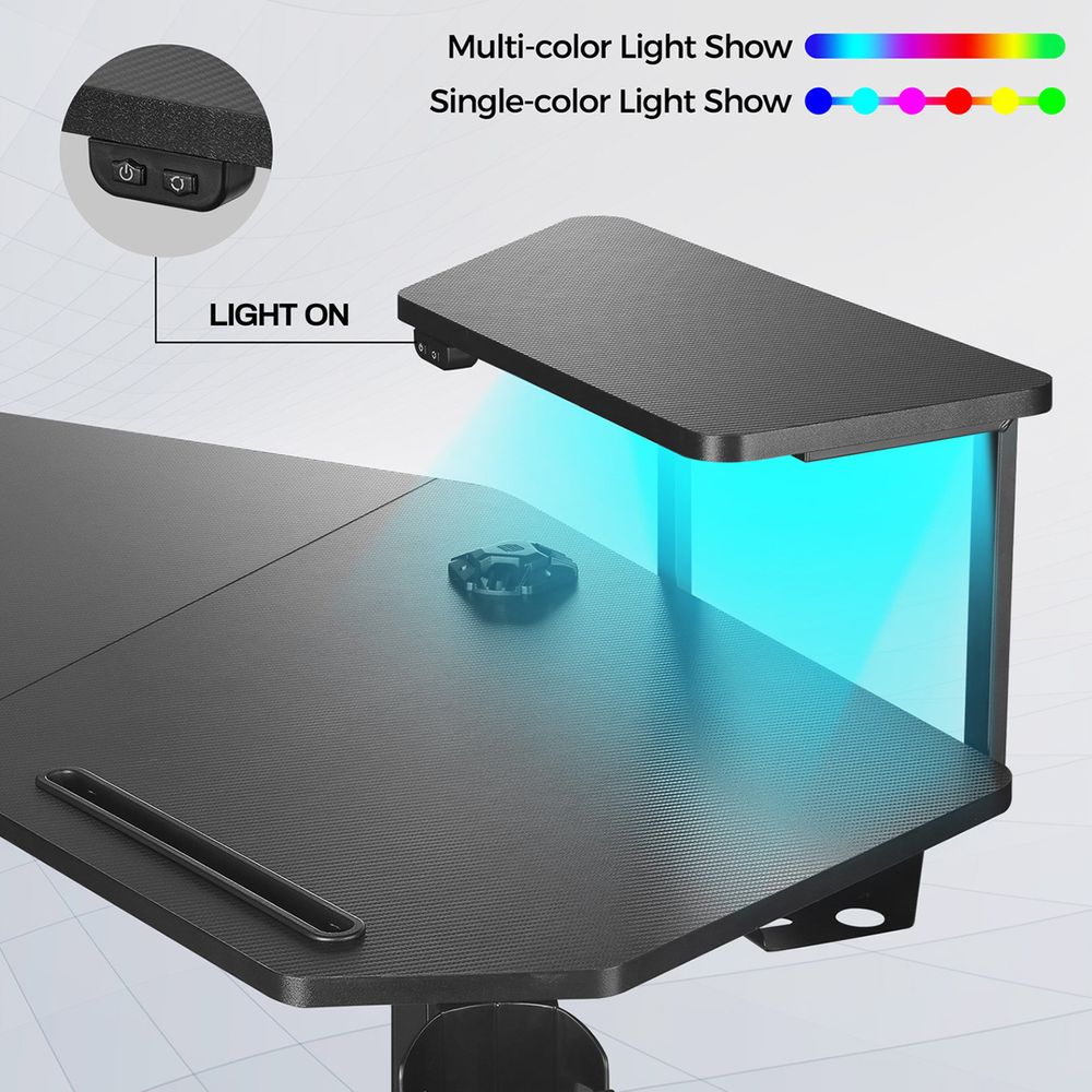 Gaming γραφείο υπολογιστή Eureka Ergonomic με εργονομική σχεδίαση για άνετο παιχνίδι και δημιουργία με τις ώρες. Περιλαμβάνει μεγάλη επιφάνεια εργασίας 180 x 75 cm με πλήρης επιφάνεια ποντικιού, δύο ανυψωτές οθόνης, υποδοχές φορητών συσκευών, γάντζο ακουστικών και ποτηροθήκη. Τα καλώδια τακτοποιούνται ώστε να μην σε εμποδίζει τίποτα, ενώ συνοδεύεται από τη προέκταση του πληκτρολογίου. Χάρη στον ελεγχόμενο φωτισμό RGB το setup σου αναδεικνύεται μοναδικά.