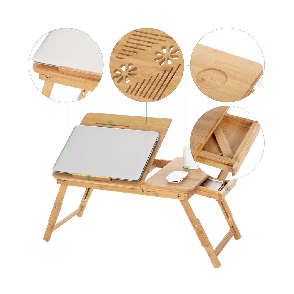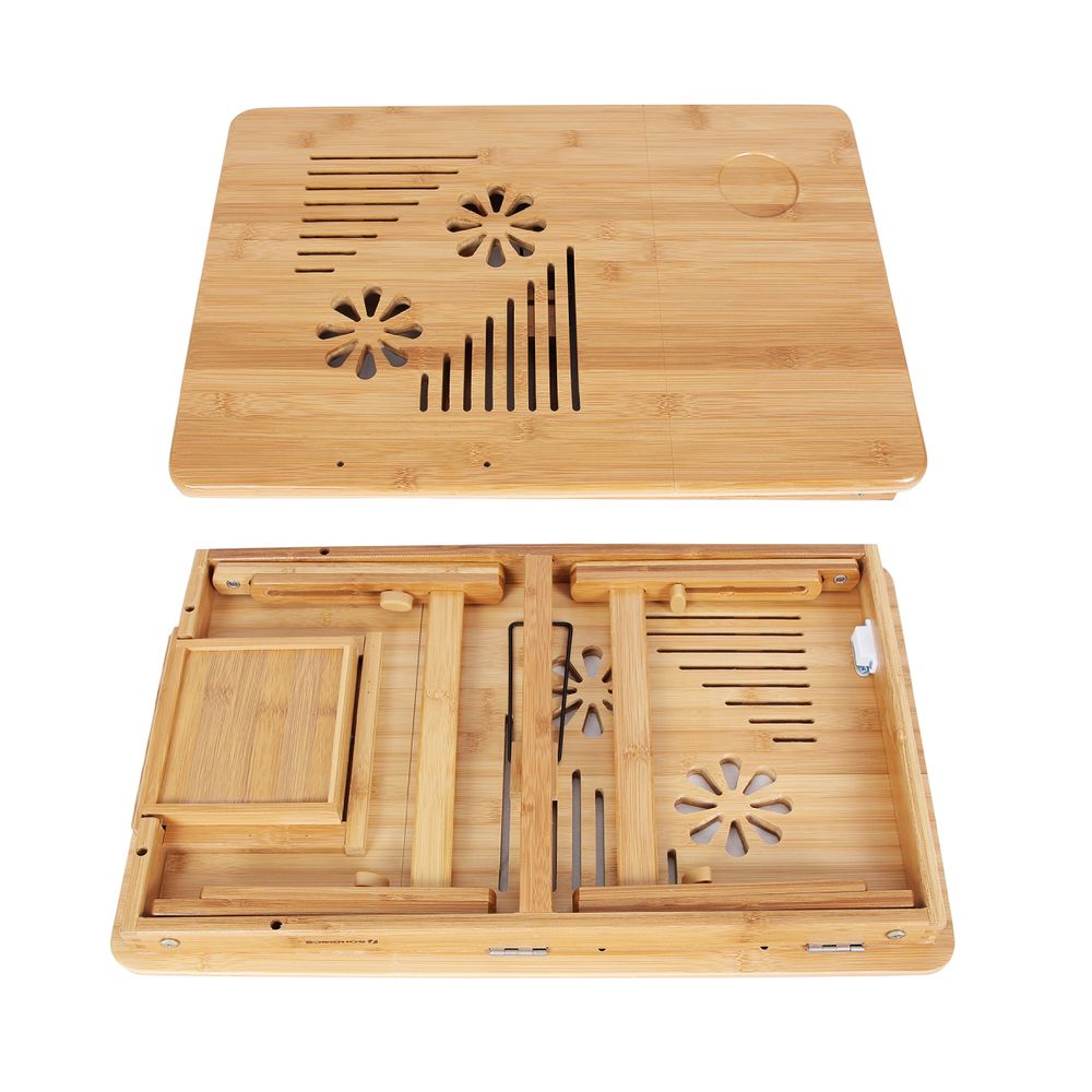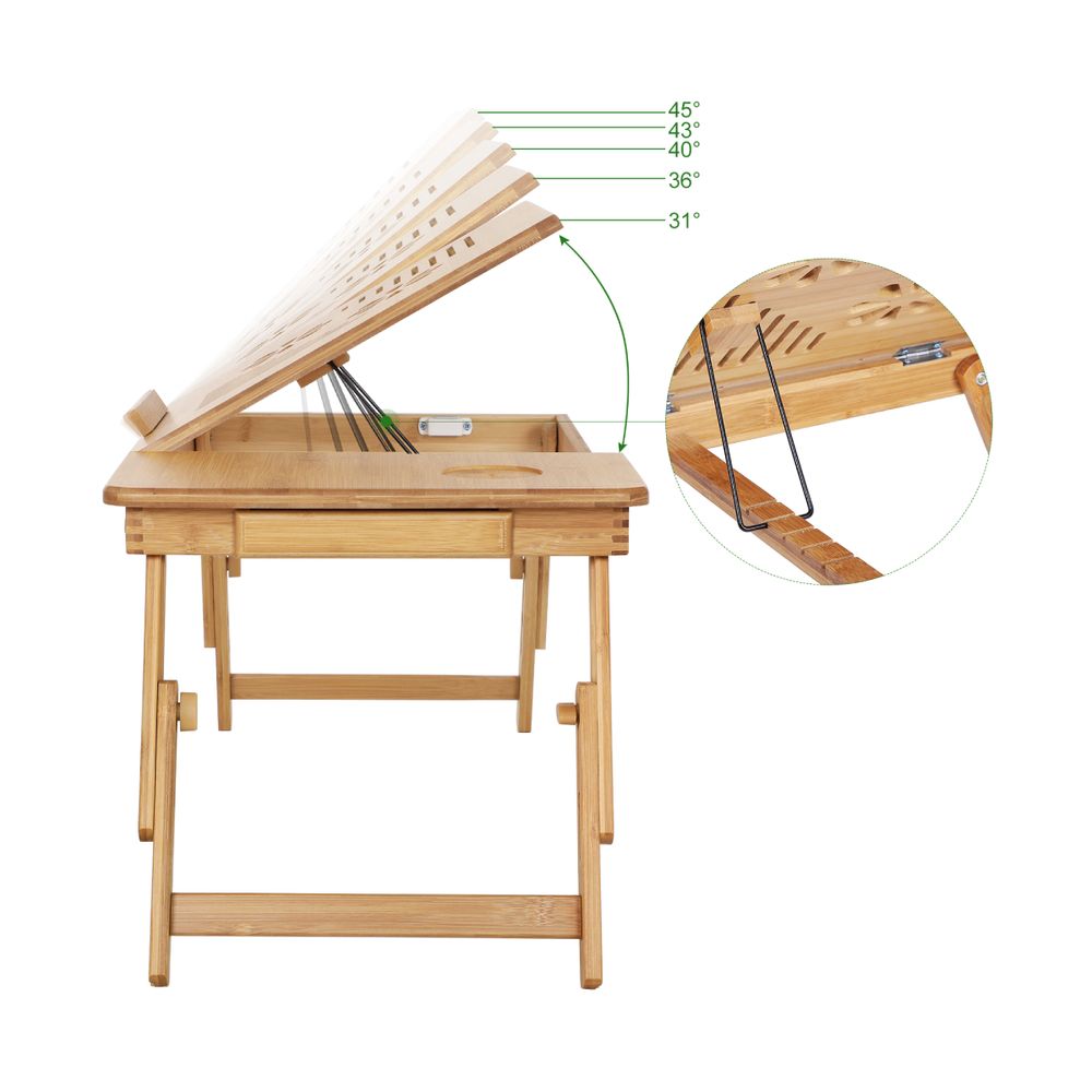 Το πτυσσόμενο τραπέζι από αδιάβροχο μπαμπού συνδυάζει μοντέρνο σχεδιασμό και πρακτικότητα, διπλώνει εύκολα και αποθηκεύεται παντού. Ιδανικό για laptop, ζωγραφική ή χαλάρωση στο κρεβάτι και στον καναπέ.