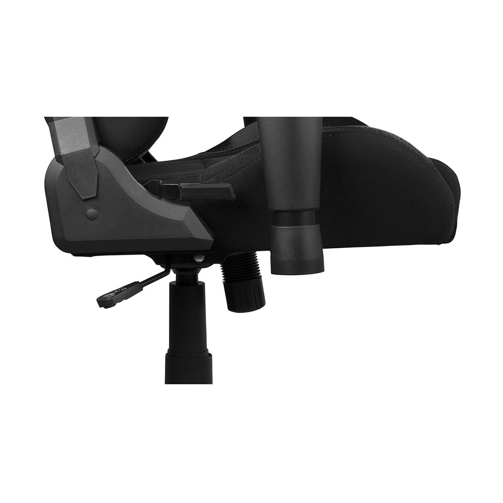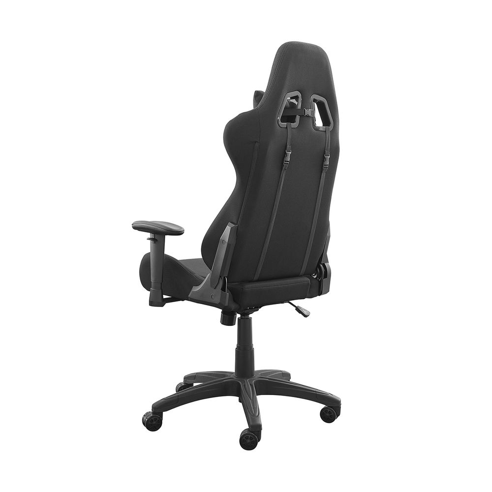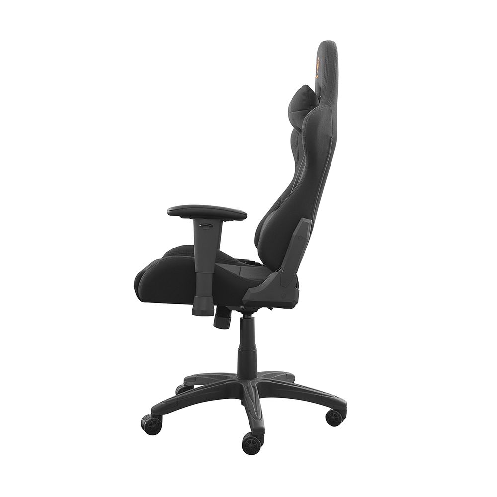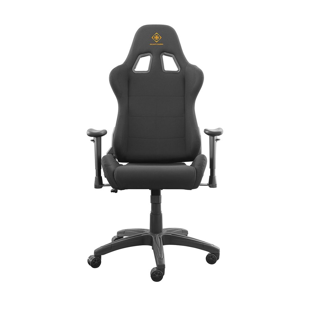 Καρέκλα gaming από ύφασμα της εταιρείας Deltaco. Με ψηλή πλάτη και επιπλέον μαξιλάρια για προσκέφαλο και πλάτη, απόφυγε προβλήματα στην πλάτη και στον αυχένα μετά από αμέτρητες ώρες σε αυτή την καρέκλα. Η επιλογή υλικού από νάιλον σου δίνει επίσης λιγότερη εφίδρωση στη μέση των έντονων αγώνων καθώς το ύφασμα αναπνέει καλύτερα. Η καρέκλα είναι φυσικά ρυθμιζόμενη καθ' ύψος, όπως και τα μπράτσα της. Τα μαξιλάρια για την πλάτη και το λαιμό μπορούν επίσης να προσαρμοστούν για την καλύτερη εφαρμογή.