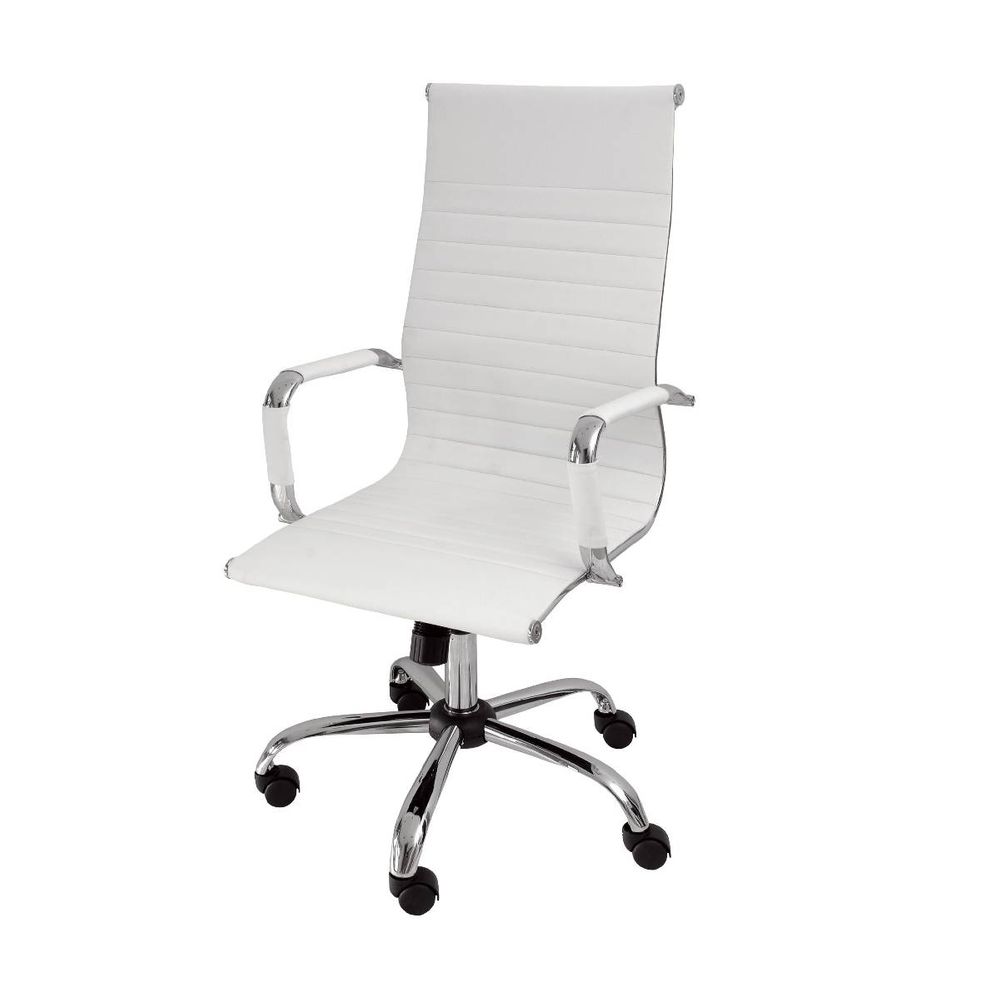 Καρέκλα γραφείου της Velco σε λευκό χρώμα. Με επιφάνεια PU και μπράτσα χρωμίου με επένδυση είναι η ιδανική επιλογή για εσένα. Διαθέτει μηχανισμούς δυο λειτουργιών: ανάκλισης και ανύψωσης.