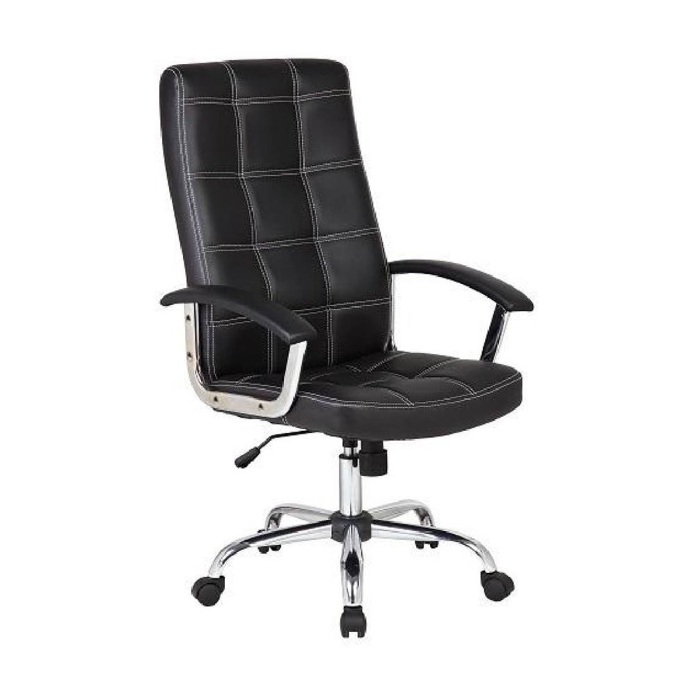 Πολυθρόνα γραφείου της Velco σε μαύρο χρώμα με επιφάνεια PVC. Τα μπράτσα της είναι χρωμίου με επένδυση PP. Διαθέτει δυο μηχανισμούς ανάκλισης και ανύψωσης.
