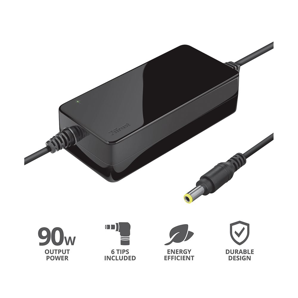 Ο γενικός φορτιστής φορητού υπολογιστή Trust Primo 90W μπορεί να χρησιμοποιηθεί με σχεδόν οποιοδήποτε φορητό υπολογιστή που απαιτεί τροφοδοτικό 90W ή λιγότερο. Απλώς επιλέγεις μία από τις παρεχόμενες υποδοχές και φορτίζεις τον φορητό υπολογιστή Acer, Asus, Dell, HP, Lenovo, Medion ή MSI. Λειτουργεί με τις τάσεις της πρίζας τοίχου παντού στον κόσμο, που σημαίνει ότι μπορείς να φορτίζεις με ασφάλεια τον φορητό υπολογιστή σου οπουδήποτε.