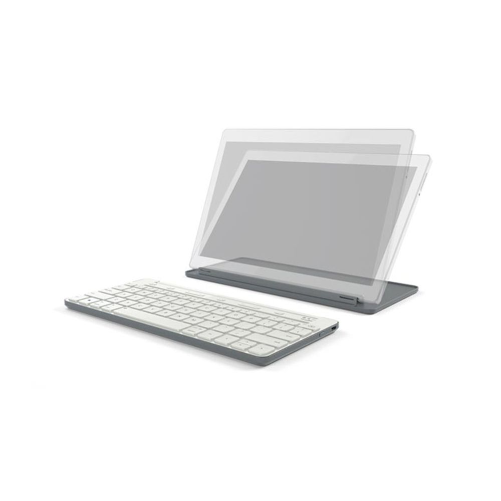 Πληκτρολόγιο Universal Mobile Gray συμβατό με με iPad, iPhone, συσκευές Android και Windows tablets, με ασύρματη τεχνολογία Bluetooth και διακόπτης εναλλαγής λειτουργικού συστήματος ο οποίος σου επιτρέπει άμεση εναλλαγή συσκευών.