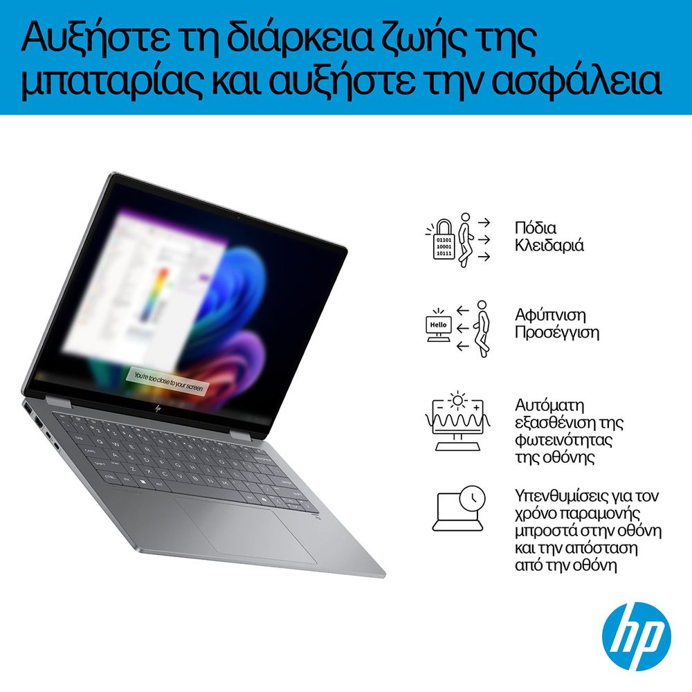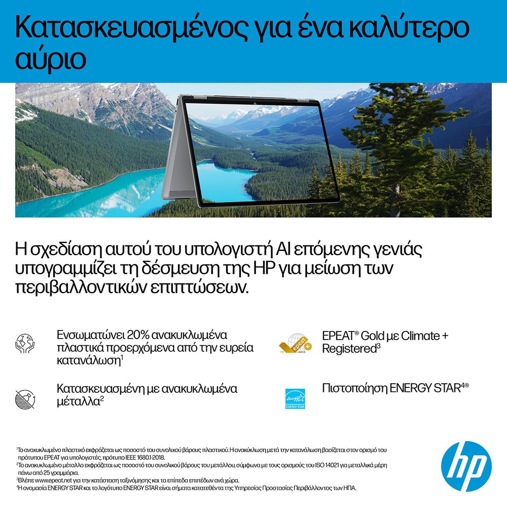 NPU 50TOPS- Next Gen AI PC, HP AI Companion, Οθόνη 14’’πιστοποίηση Eyesafe®& Gorilla Glass 3, λόγος διαστάσεων 16:10, Κατασκευή απο ανακυκλωμένα μέταλλα, Pen Included